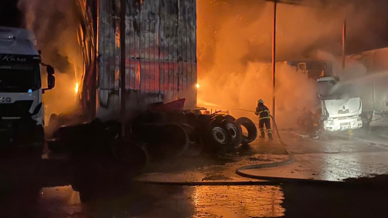 Olay, saat 04.00 sıralarında meydana geldi. Özel bir ağır vasıta servisi ve deposundan alevler yükseldiğini görenlerin haber vermesi üzerine bölgeye çok sayıda itfaiye, jandarma ve sağlık ekibi sevk edildi. İtfaiye ekiplerinin yoğun çalışması sonucu yangın, çevredeki diğer işletmelere sıçramadan söndürüldü. Sebebi henüz belirlenemeyen yangın sonucunda işletmenin ofis ve yedek parça deposu tamamen yanarak kullanılamaz hale geldi. Servis içerisinde bakımı yapılan veya bekletilen 2 çekici, kamyon ve dorsede ise büyük çapta maddi hasar meydana geldi. Jandarma yangının çıkış sebebinin belirlenmesi amacıyla geniş çaplı soruşturma başlattı.