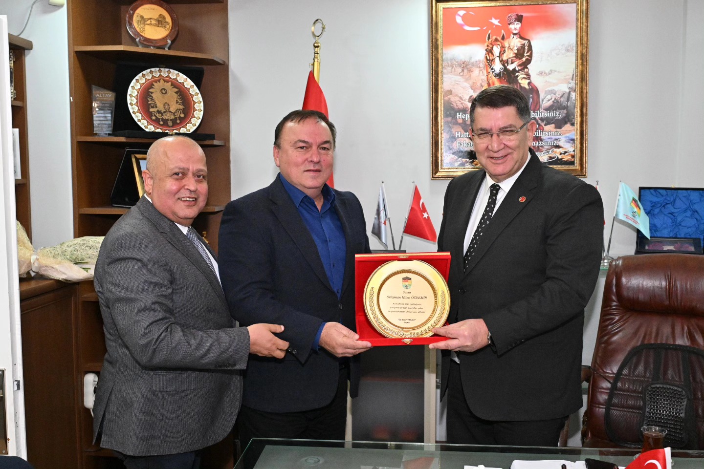 Ziyarette, görev süresi boyunca odaya ve esnafa sunduğu hizmetlerden dolayı önceki dönem Alanya Bakkallar Bayiler Büfeciler Esnaf ve Sanatkarlar Odası Başkanı Süleyman Hilmi Özdemir’e teşekkür plaketi takdim edildi.