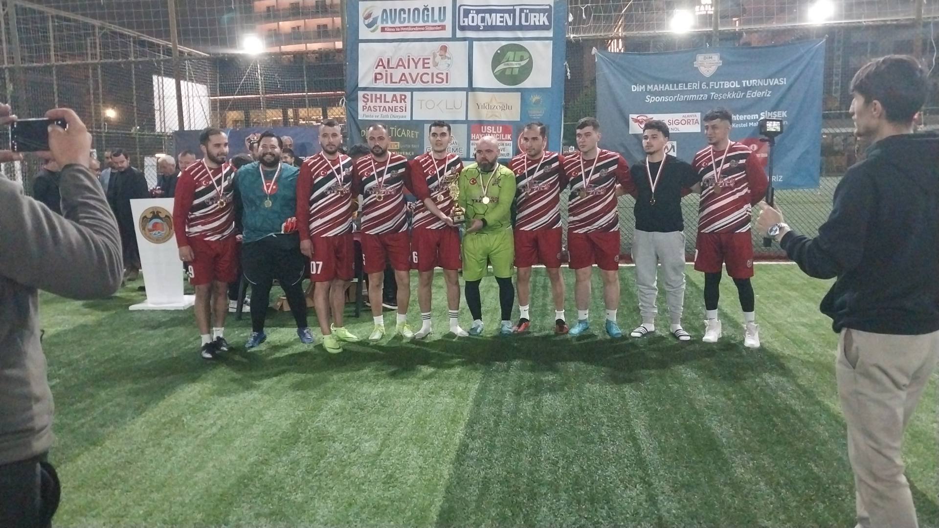 Şampiyon Değirmendere Mahallesi’ne kupasını Alanya Belediye Başkan Danışmanı Nazmi Zavlak verdi. Turnuva boyunca sergiledikleri başarılı performansla dikkat çeken Değirmendere takımı, şampiyonluk sevincini mahalle sakinleriyle birlikte yaşadı. Değirmendere Mahallesi sakinleri, mahalle antrenörü İmdat Sarıtaş ve takımı yalnız bırakmayan Değirmendere Muhtarı Kasım Günay’a teşekkür etti.