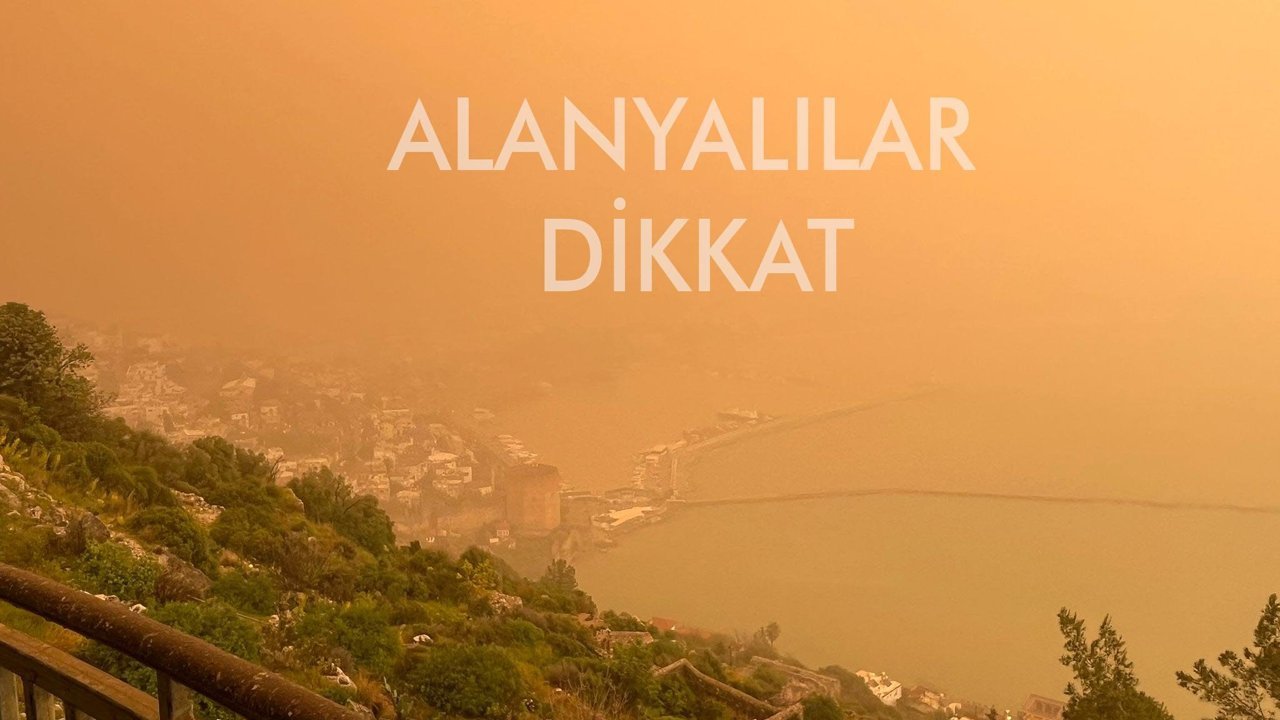 Alanya, bu sabah Sahra Çölü kaynaklı yoğun toz taşınımı nedeniyle alışılmadık bir görüntüyle güne başladı. Sarı ve kızıl tonların hakim olduğu puslu gökyüzü, kent genelinde günlük yaşamı olumsuz etkiliyor.