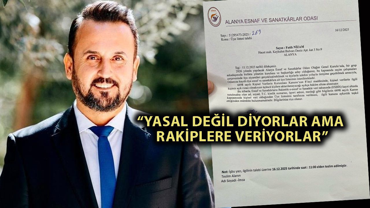 Alanya Esnaf ve Sanatkârlar Odası'nın olağan genel kurulu yaklaşırken, başkan adaylarından Fatih Nizam'ın açıklamaları seçim sürecinde eşitlik tartışmasını alevlendirdi. Nizam, seçim çalışmaları kapsamında talep ettikleri güncel üye listesinin oda yönetimi tarafından paylaşılmadığını belirterek, bu durumun adil rekabeti engellediğini vurguladı. Öte yandan, rakip adayların aynı listelerle sahada etkin bir şekilde çalıştığını iddia eden Nizam, yönetimden kaynaklanan ayrımcılığa dikkat çekti.