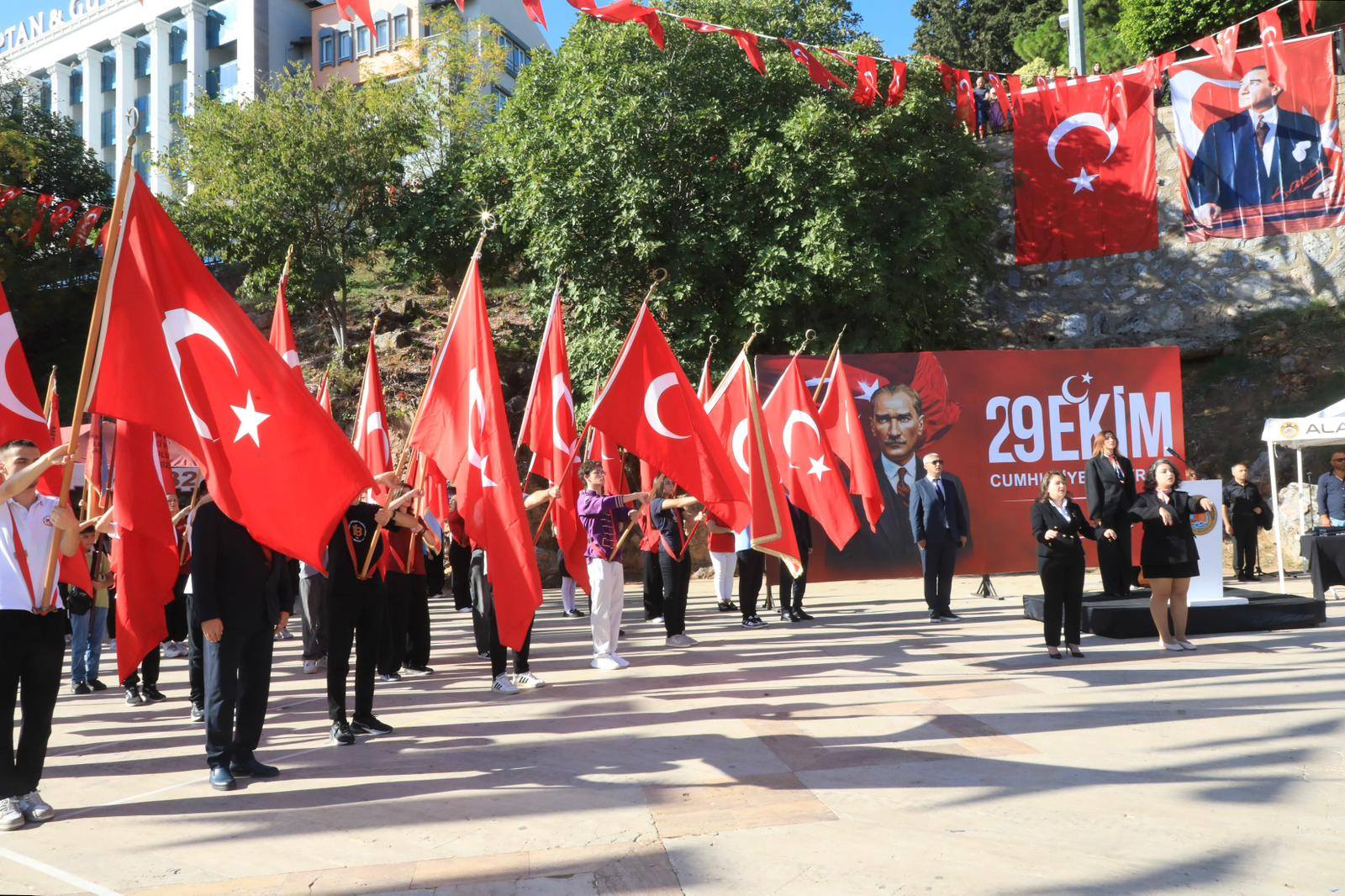 Saygı duruşu ve İstiklal Marşı’nın okunmasıyla başlayan tören, Kaymakam Şakir Öner Öztürk’ün günün anlam ve önemini içeren konuşmasıyla devam etti. Öztürk, Cumhuriyet’in kazanımlarına vurgu yaparak tüm vatandaşların bayramını kutladı.
