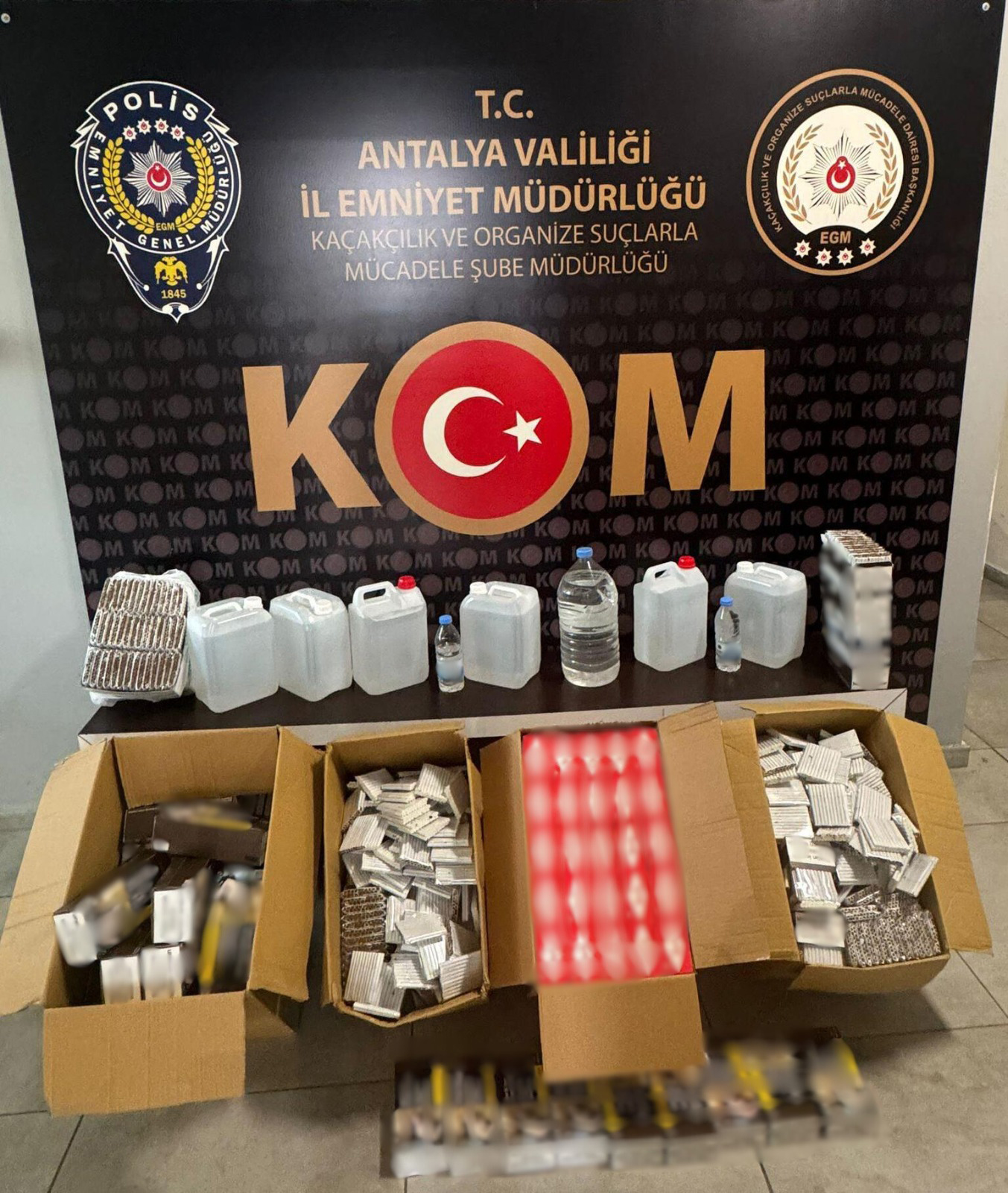 Antalya Emniyet Müdürlüğü KOM ekipleri, '6136 Sayılı Kanuna Muhalefet' kapsamında yürütülen çalışmalarda 1 şüpheliyi gözaltına alırken, arama çalışmalarında tabanca ve 179 fişek ele geçirildi. Ayrıca, '5607 Sayılı Kaçakçılık Kanunu' çerçevesinde Kepez, Aksu, Muratpaşa, Alanya ve Manavgat ilçelerinde eş zamanlı operasyonlar düzenlendi. İş yerleri, depolar ve ikametlerde yapılan aramalarda, 743 bin 240 kaçak makaron, 319 paket kaçak sigara, 360 kilogram kaçak tütün, 36 litre kaçak içki, 2 kaçak hayvan ve kaçak elektronik sigara ele geçirildi. Bu operasyonlar kapsamında, 8 şüpheli hakkında adli işlem yapıldığı bildirildi. Ayrıca, kesinleşmiş hapis cezası bulunan 2 kişi yakalanarak adli mercilere teslim edildi.