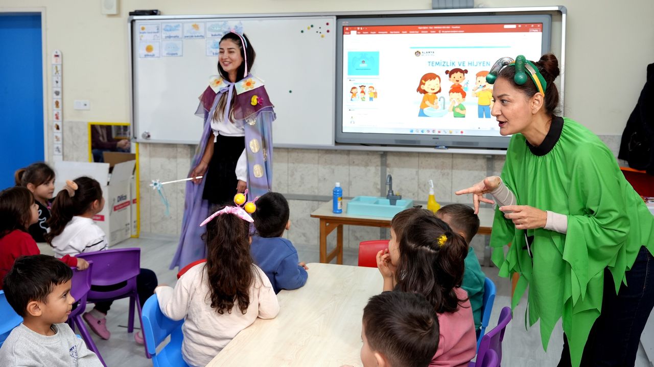 Alanya'da Temizlik İşleri Müdürlüğü, erken yaşta hijyen bilinci oluşturmak ve sağlıklı nesillerin yetişmesine katkı sağlamak amacıyla anaokullarında düzenlediği hijyen eğitimlerine aralıksız devam ediyor. Çocukların günlük yaşamlarında kolaylıkla uygulayabilecekleri temel temizlik alışkanlıklarını kazanmalarını hedefleyen eğitimler, minik öğrenciler tarafından büyük ilgiyle karşılanıyor. Gerçekleştirilen program kapsamında çocuklara; doğru diş fırçalama teknikleri, el ve yüz temizliği ile kişisel hijyenin önemi, yaş gruplarına uygun ve anlaşılır bir dille anlatıldı. Eğitimler, teorik bilginin yanı sıra oyunlar ve interaktif etkinliklerle desteklenerek çocukların hem eğlenmesi hem de kalıcı öğrenme sağlamaları amaçlandı. Alanya Belediyesi Tiyatro Sanatçısı Esra Tığlı ile Eğitimci Canan Özdemir tarafından hazırlanan eğlenceli oyunlar ve canlandırmalar, çocukların hijyen konusuna olan ilgisini artırdı. Renkli sahneler ve neşeli anlatımlar eşliğinde gerçekleştirilen sunumlarda, temizlik alışkanlıklarının günlük yaşamın doğal bir parçası olduğu vurgulandı.