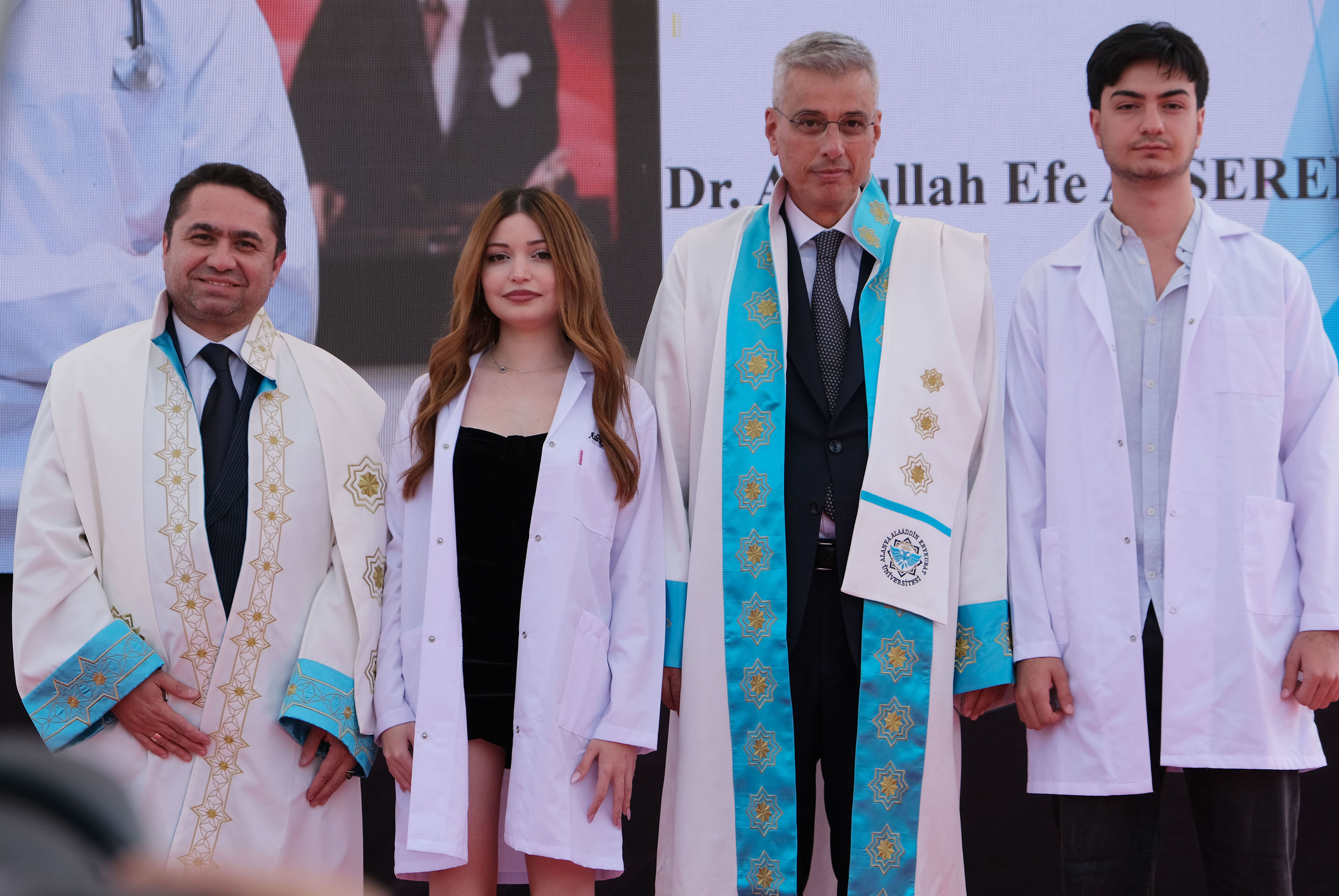 Bakan Kemal Memişoğlu, "Bugün beyaz önlük giyeceksiniz ama bu önlüğü sadece bir giysi olarak değil, vicdanınız olarak görün. Çünkü hekimlik, başkaları için çalışmak, kendi hayatını başkalarına adamak demektir. Hekim, kendi çocuğu hastayken bile başkasının çocuğuna şifa bulmak için koşandır. Bu, bir adanmışlık mesleğidir. Beyaz önlük bilgiden önce, insan sevgisini, merhameti, vicdanı temsil eder. Bir hekimin kurtardığı bir hayatın gözlerindeki minnet duygusu, hiçbir maddi değerle ölçülemez. O gözlerdeki şükran, bir ömrün karşılığıdır. Bu duyguyu hisseden insan, mesleğini sevgiyle yapar. Hekimlik, yalnızca bir kartvizitle taşınmaz, yürekle yapılır" diye konuştu.
