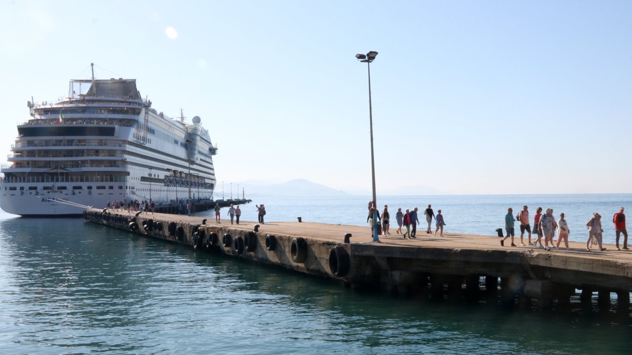 Alanya'ya demirleyen İtalyan bandıralı 'AIDAstella' adlı kruvaziyer çoğunluğu Alman vatandaşı 2 bin 129 turist getirdi.