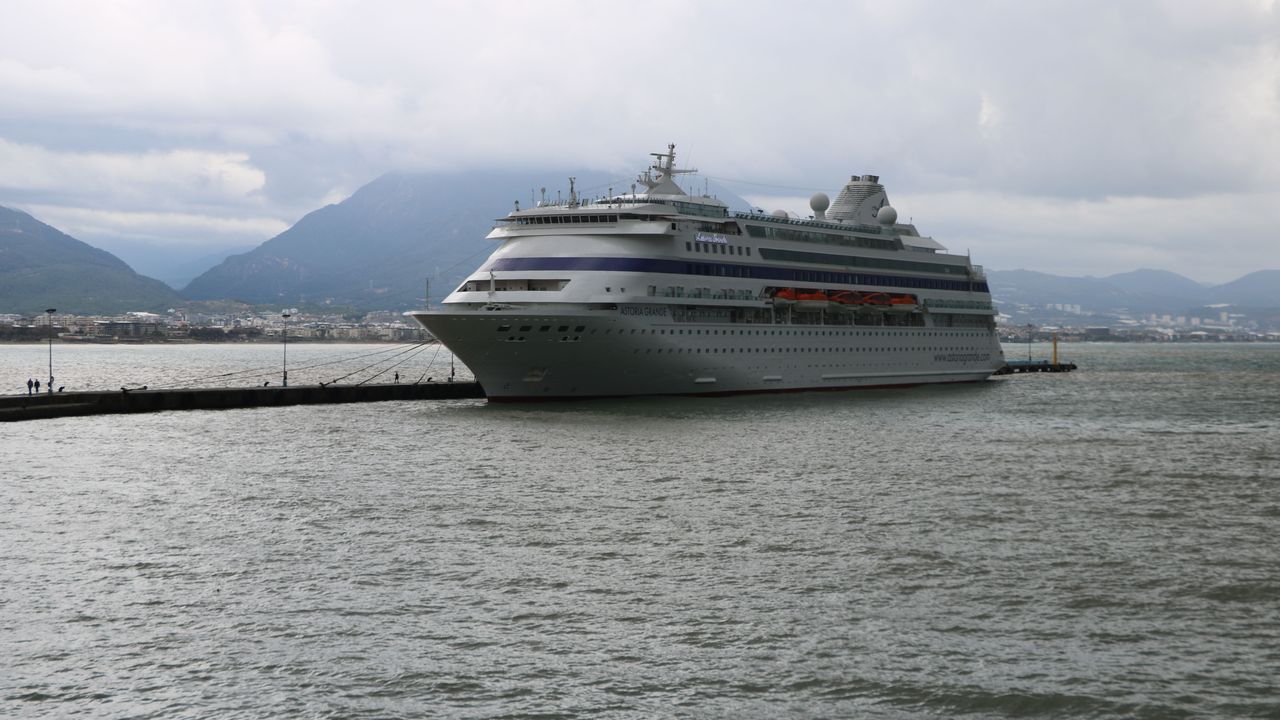 Alanya'da yılın ilk kruvaziyeri demirledi. 'Astoria Grande' adlı kruvaziyer çoğunluğu Rus vatandaşı 946 turisti şehre getirdi.