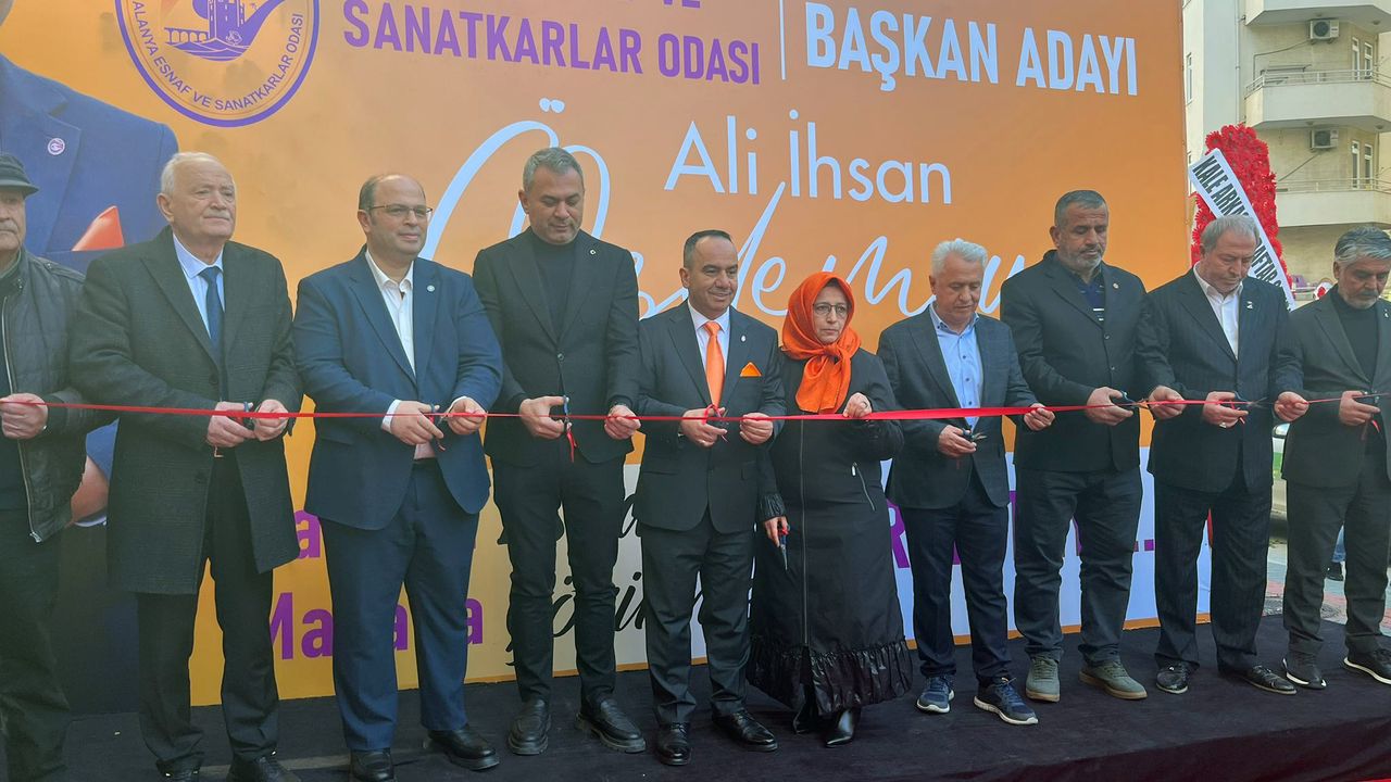 Alanya Esnaf ve Sanatkârlar Odası (ALESO) Başkan Vekili ve Başkan Adayı Ali İhsan Özdemir, seçim ofisinin açılışını yoğun katılımlı bir törenle gerçekleştirdi. Açılışa AK Parti İlçe Başkanı Mehmet Şarani Tavlı, İYİ Parti İlçe Başkanı Hilmi Er, Alanya Ziraat Odası Başkanı Tahir Göktepe, Alanya Esnaf ve Sanatkârlar Odası (ALESO) Başkanı Nuri Demir, Alanya Esnaf ve Sanatkârlar Odası (ALESO) başkan adayları Fatih Nizam, Duran Şimşek ve çok sayıda davetli katıldı. Açılış konuşmalarının ardından dua okunarak kurdele kesimi gerçekleştirildi. Açılışta konuşan Alanya Esnaf ve Sanatkârlar Odası (ALESO) Başkan Vekili ve Başkan Adayı Ali İhsan Özdemir, “Esnaf için ulaşılabilir, adil ve çözüm odaklı oda anlayışıyla yola çıktık. Ortak akıl ve samimiyetle çalışacağız” dedi.