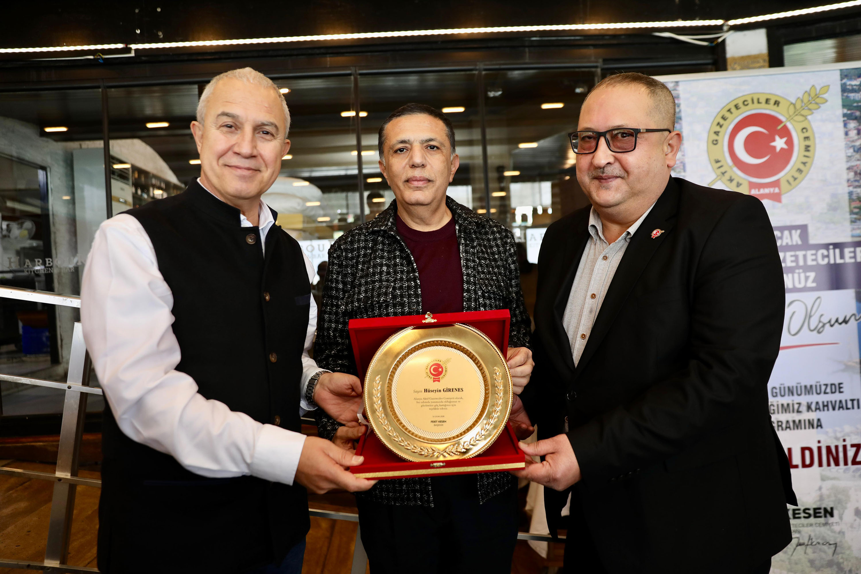 Kesen, “Ne yazık ki bugün, değerli meslek büyüğümüz, abimiz, eski başkanlarımızdan Fazıl Tunç'un entübe edilmesinin acısını yaşıyoruz. Dualarımız onunla. Fazıl Abi'ye acil şifalar diliyoruz. Yine üyemiz İbrahim İpbüker de bir kaza sonucu ayağının kırılması nedeniyle tedavi altında. İpbüker'e de geçmiş olsun diyoruz. Son olarak, bugün bizleri burada ağırlayan, Alanyamızın saygın ve sevilen iş insanı Sayın Hüseyin Girenes'e teşekkür ediyorum. Değerli meslektaşlarım, 10 Ocak Çalışan Gazeteciler Günü'nüzü kutluyor, sağlık, mutluluk ve başarı diliyoruz” dedi.