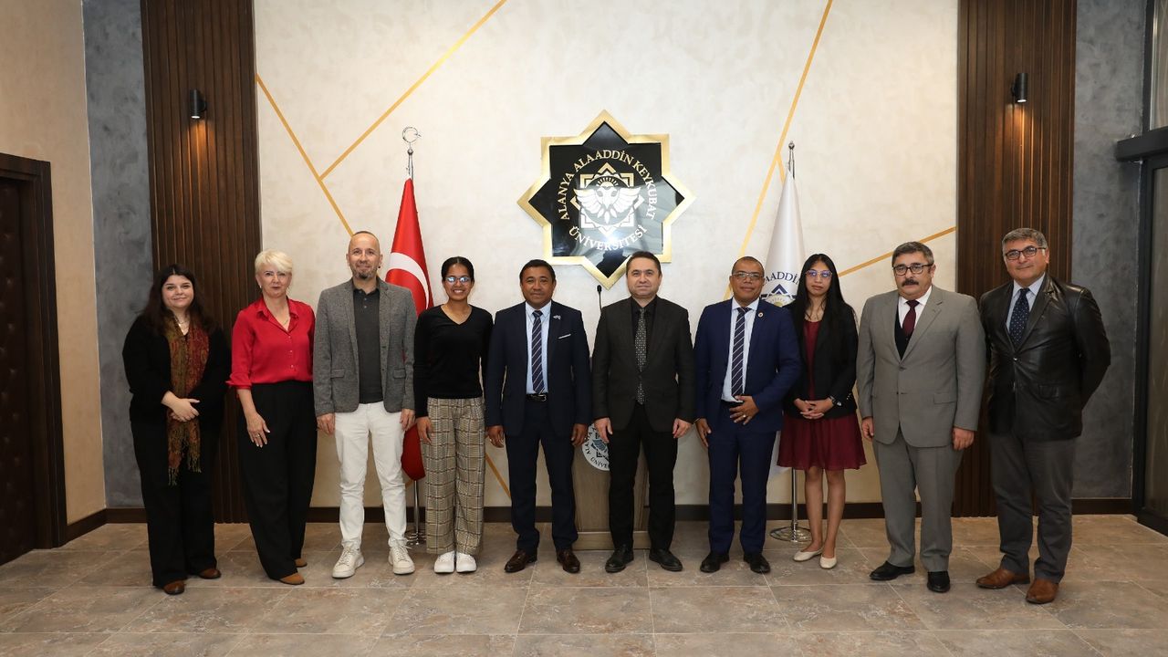 Madagaskar’daki Erasmus KA171 partner kurumlardan biri olan University of Antananarivo’nun Rektörü Prof. Dr. Rivoarison Randrianasolo ve Rektör Yardımcısı Prof. Dr. Tojonirina Andriambinintsoa Ranaivoson, ALKÜ Rektörü Prof. Dr. Kenan Ahmet Türkdoğan’ı ziyaret ederek çeşitli iş birliği konularında temaslarda bulundu. Ziyarette, ALKÜ Rektör Yardımcısı Prof. Dr. Mehmet Kılıç, Dış İlişkiler Genel Koordinatörlüğünden Genel Koordinatör Yardımcısı Öğr. Gör. Gülsiye Bıçak ve KA171 Gelen Hareketlilik Sorumlusu Öğr. Gör. Beril Karanfil, Erasmus KA171 hareketliliği kapsamında daha önce Madagaskar’da bulunmuş olan İşletme Bölümünden Prof. Dr. Mehmet Fatih Güner ile İktisat Bölümünden Prof. Dr. Oğuz Yıldırım, Madagaskar’dan ALKÜ Genetik ve Biyomühendislik Bölümüne gelen Erasmus öğrencileri katıldı. Gerçekleştirilen akademik temaslarda iki üniversite arasında Erasmus Değişim Programı çerçevesinde yürütülebilecek akademik iş birliklerinin yanı sıra turizm, teknoloji ve endemik bitkiler gibi alanlarda ortak proje olanakları değerlendirildi. Görüşmelerin, iki kurum arasında uzun vadeli iş birliklerine güçlü bir zemin oluşturduğu ifade edildi. Ziyaretin, iki kurum arasında akademik ve kültürel iş birliklerini daha da güçlendirilmesi bekleniyor. Heyet, bir hafta süreyle Alanya ve ALKÜ’de bulunarak temaslarını sürdürecek.