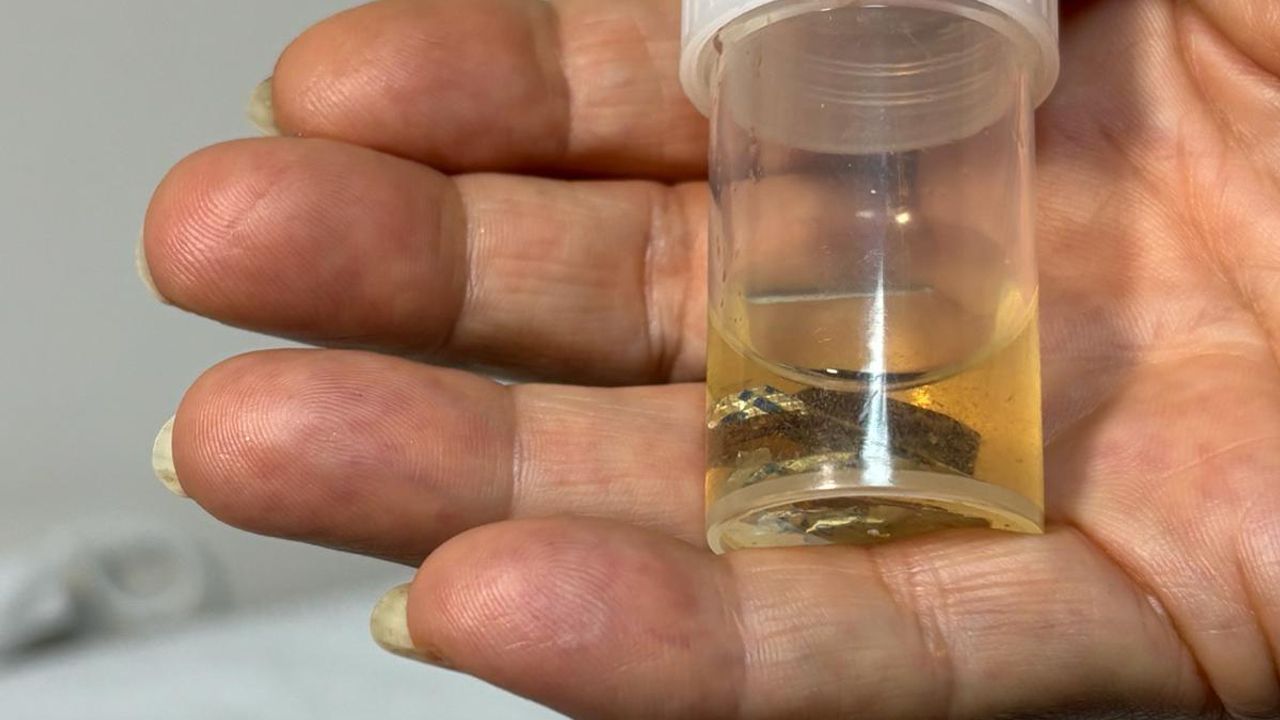 Dr. Öğr. Gör. Aliye Gamze Çalış ise kronik öksürük ve balgam şikayetiyle kendilerine başvuran Sahibe Güzin Zeybekoğlu'nun dış merkezde çekilen 4 yıllık akciğer tomografilerini tekrar değerlendirdiklerini belirterek, 'Sağ akciğer alt hava yolunda bir metalik dansite gördük' dedi. Daha sonra hastaya bronkoskopi işlemi uygulamaya karar verdiklerini ifade eden Dr. Çalış, şunları söyledi: