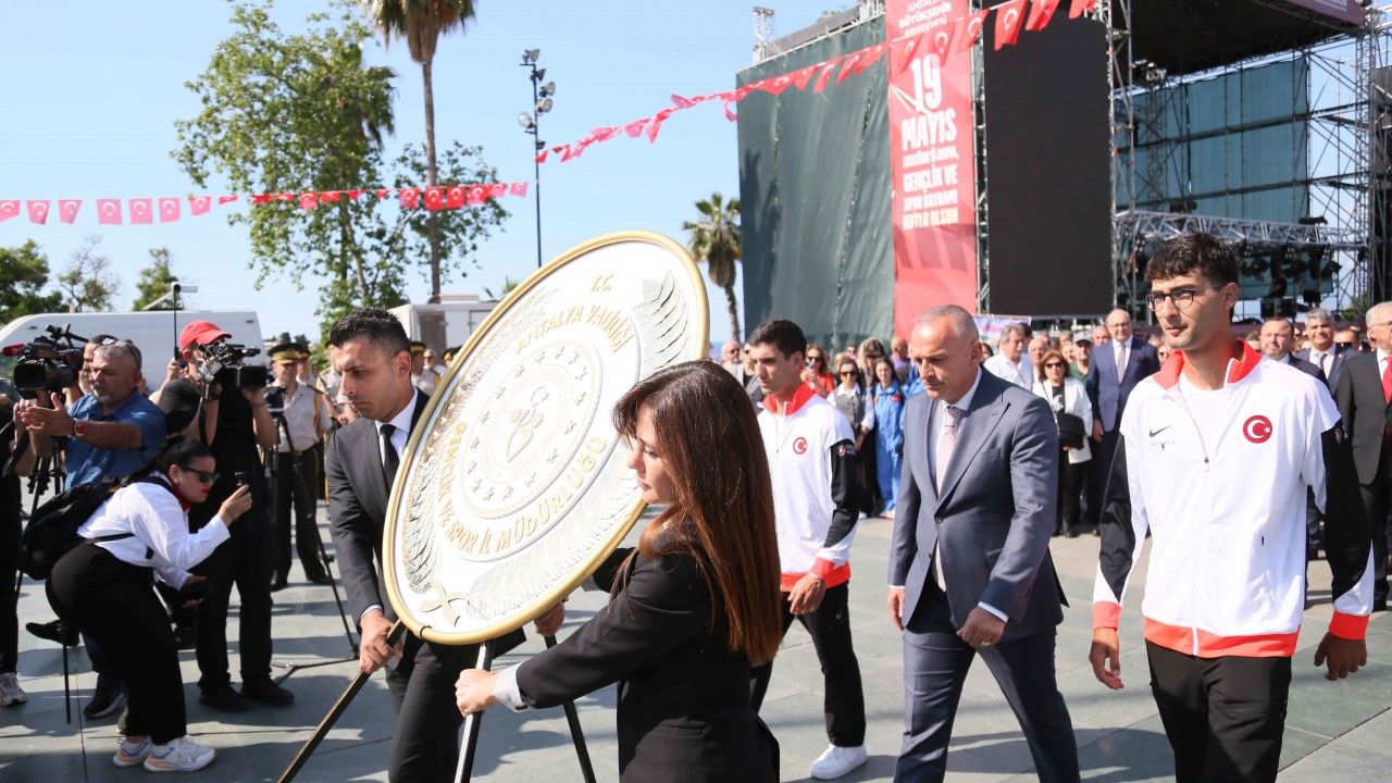 19 Mayıs Atatürk'ü Anma Gençlik ve Spor Bayramı, Antalya'da Cumhuriyet Meydanı'ndaki çelenk sunma töreniyle başladı. Törene Antalya milletvekilleri AK Parti'den İbrahim Ethem Taş, CHP'den Aliye Coşar, Mustafa Erdem, Aykut Kaya, kamu kurum yöneticileri, belediye başkanları, siyasi partilerin il başkanları, çok sayıda sivil toplum örgütü temsilcisi, vatandaşlar ve öğrenciler katıldı. Gençlik ve Spor İl Müdürü Yavuz Gürhan tarafından Atatürk Anıtı'na çelenk sunumuna, Paris 2024 Olimpiyat Oyunları'nda madalya kazanan takımdan milli sporcular Berkim Tümer ve Muhammed Abdullah eşlik etti. Ardından CHP, Birleşik Kamu İş, Atatürkçü Düşünce Derneği, Antalya Barosu, siyasi partiler, meslek kuruluşları ve dernekler, sendikalar gibi sivil toplum örgütlerine ait çelenklerin sunumu yapıldı. CHP il Başkanı Nail Kamacı ve Atatürkçü Düşünce Derneği Başkanı İbrahim Daş, birer konuşma yaptı. Törende gün içinde Kaleiçi'nden tekneyle Atatürk'ün Bandırma Vapuru'na binişini canlandıran Antalya Şair Ozan ve Yazarlar Derneği Başkanı Şükrü Erciyeslioğlu da Atatürk kostümüyle dikkat çekti.