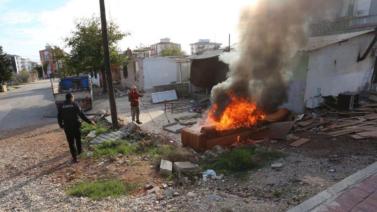 Antalya Kepez Belediyesi Zabıta Müdürlüğü ekipleri, Fevzi Çakmak Mahallesi 6205 Sokak'ta çevreye zarar veren bir hurdacıyı suçüstü tespit etti. Kentsel dönüşüm nedeniyle boşaltılan bir gecekonduda bulunan eski ev eşyalarını ve elektrik kablolarını yakarak içindeki demir ve bakırı ayrıştırmaya çalışan hurdacıya, zabıta ekipleri tarafından müdahale edildi. Zabıta ekipleri, yanan koltuklardan ve elektrik kablolarından çıkan yoğun siyah dumanın çevredeki binaları ve mahalle sakinlerini olumsuz etkilediğini belirledi. Sokakta sağlı sollu binaların bulunduğunu vurgulayan zabıta personeli, 'Her taraf bina siz burada koltuk yakıyorsunuz, kablo yakıyorsunuz, çevreyi kirletiyorsunuz' diyerek tepki gösterdi. Hurdacının, 'Bu seferlik bir şeyler yapın' demesi üzerine zabıta ekipleri, 'Vazifede merhamet vatana ihanettir. Vazifede merhamete yer yok' karşılığını verdi. Zabıta ekiplerinin çağrısı üzerine gelen su arazözü ile önce yanan evsel atıklar söndürüldü, ardından hurdacıya, 5326 sayılı Kabahatler Kanunu'nun 41/5 maddesi gereğince işlem yapıldı. Kullanılamaz ev eşyalarını kamuya açık alanlarda yakarak çevre kirliliğine neden olduğu gerekçesiyle hurdacıya 1406 TL idari para cezası kesildi.