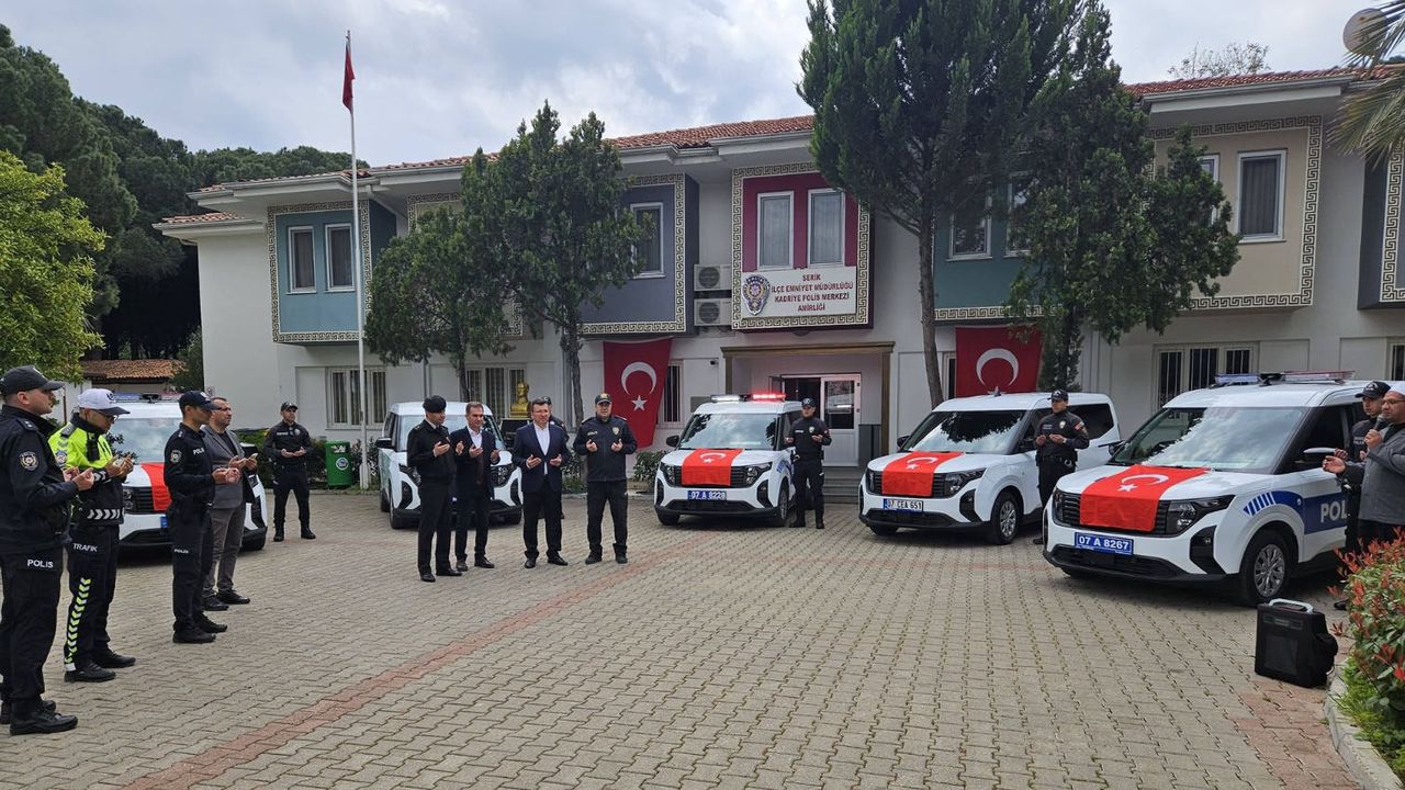Kaymakam Cemal Şahin, emniyet mensuplarıyla bayramlaşmanın ve 5 yeni aracı hizmete sunmanın mutluluğunu yaşadıklarını dile getirerek, 'Serik Merkezi Asayiş Hizmetleri Destekleme Derneği tarafından Serik İlçe Emniyet Müdürlüğü'ne hibe edilen 5 aracımız ilçe emniyet müdürlüğümüz bünyesinde hizmet vermeye başladı. Araçlar ilçedeki güvenlik ve asayiş hizmetlerine katkı sağlayacaktır. Kadriye Polis Karakolu'ndaki törenin ardından görevi başında bulunan emniyet mensuplarımızı ziyaret edip bayramlaştık' dedi.