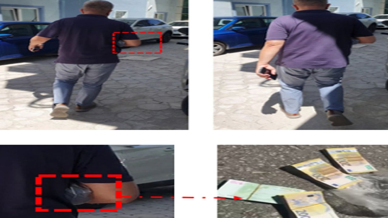İki tıp merkezinin sahibi H.U., savcılığa giderek suç duyurusunda bulundu. Antalya Cumhuriyet Başsavcılığı'nın başlattığı soruşturma kapsamında Antalya Emniyet Müdürlüğü'ne bağlı Mali Suçlar Büro Amirliği ekipleri, 3 Temmuz 2025'te, Selim E.'nin gittiği tıp merkezine gizli kamera yerleştirdi. Selim E., olay tarihinde hastane sahibinin odasında 90 bin avroyu poşet içerisinde teslim aldı. Bu sırada aynı hastane içinde bulunan başmüfettiş Murat Ayhan B.'yi arayan Selim E., 'Üstadım şimdi Hidayet Bey'in yanına geldim, emanetinizi aldım. Ben ofise doğru geçiyorum' dediği kayıtlara yansıdı.