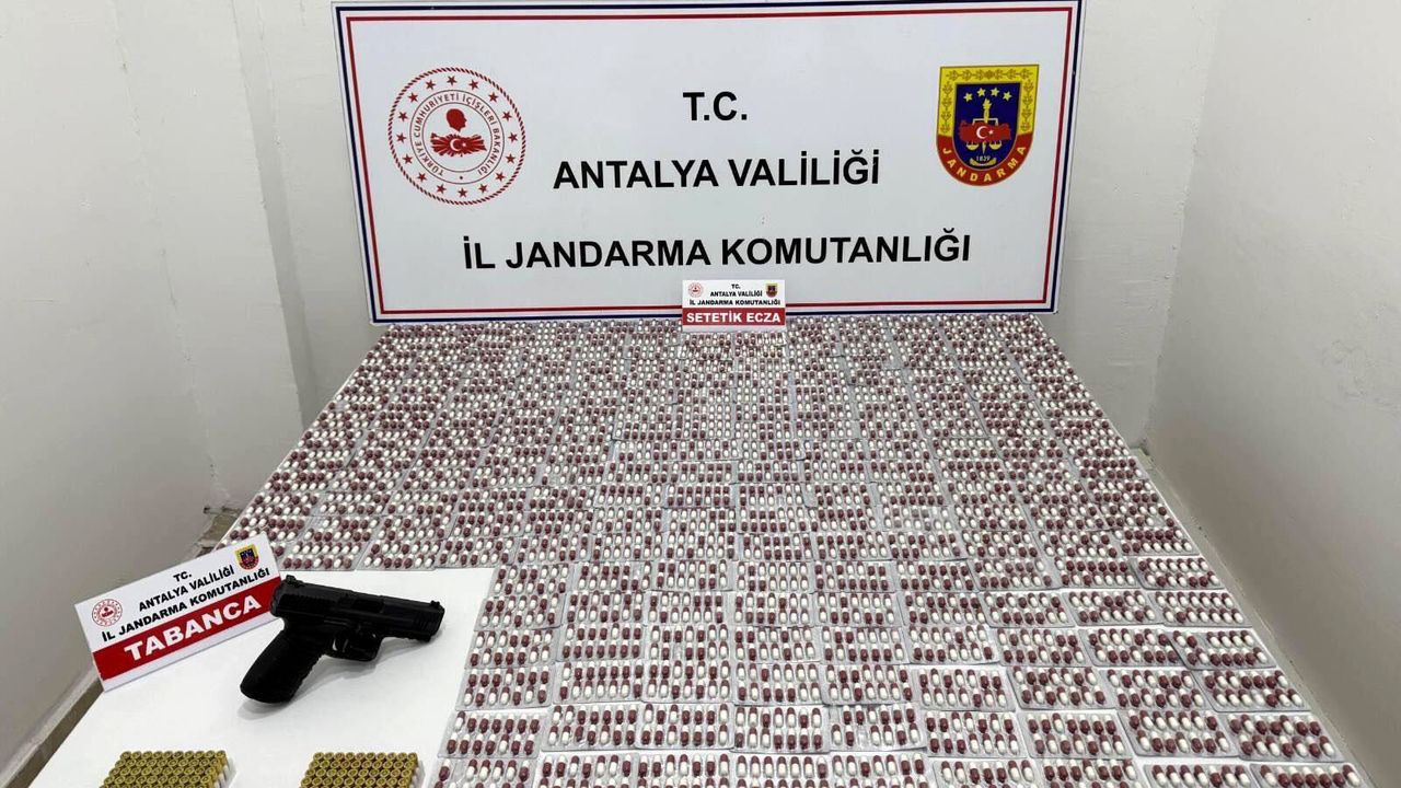 Antalya'da jandarma ekiplerince düzenlenen uyuşturucu operasyonunda 1298 sentetik uyuşturucu hap ile ruhsatsız tabanca ve 113 tabanca mermisi ele geçirildi.