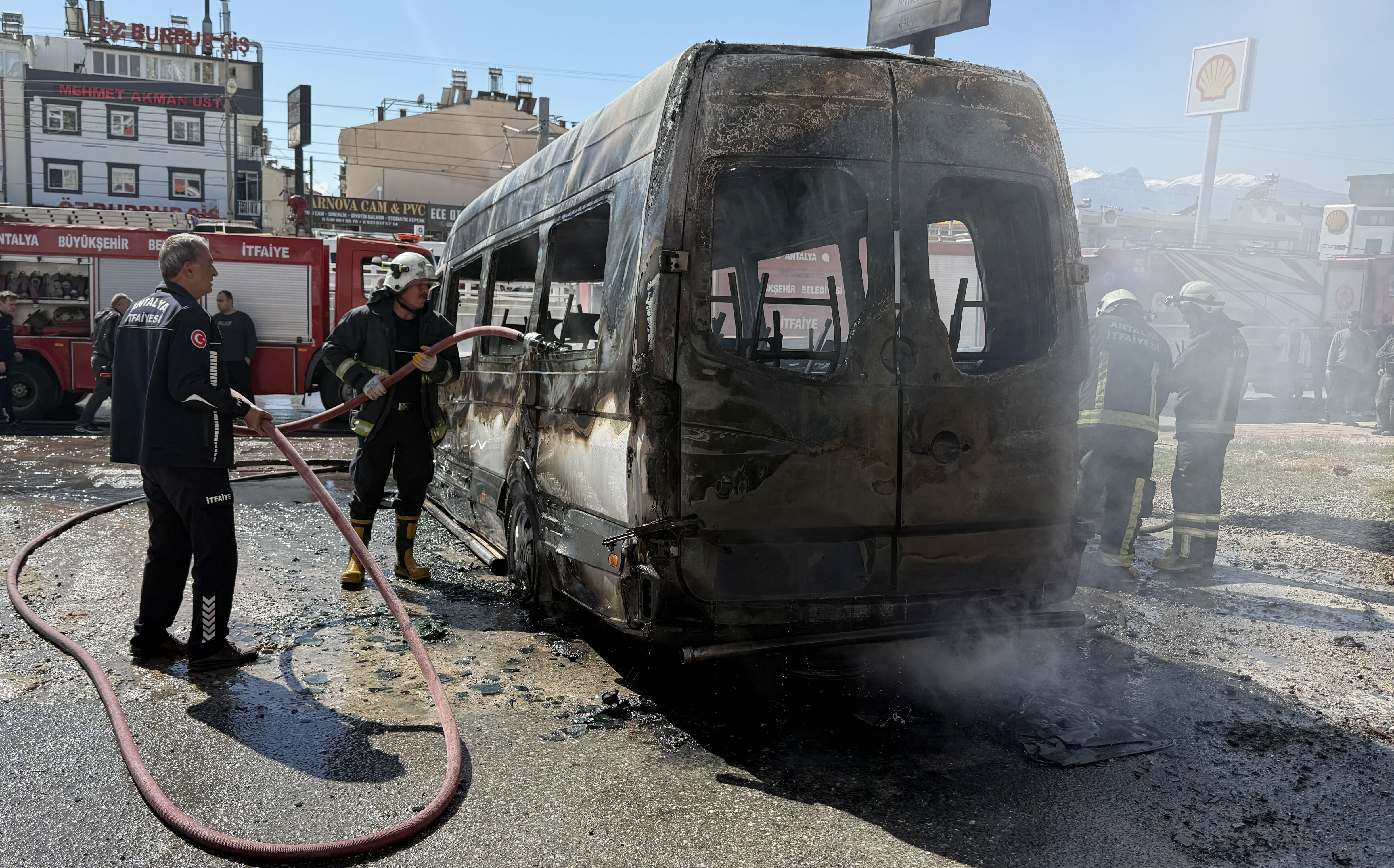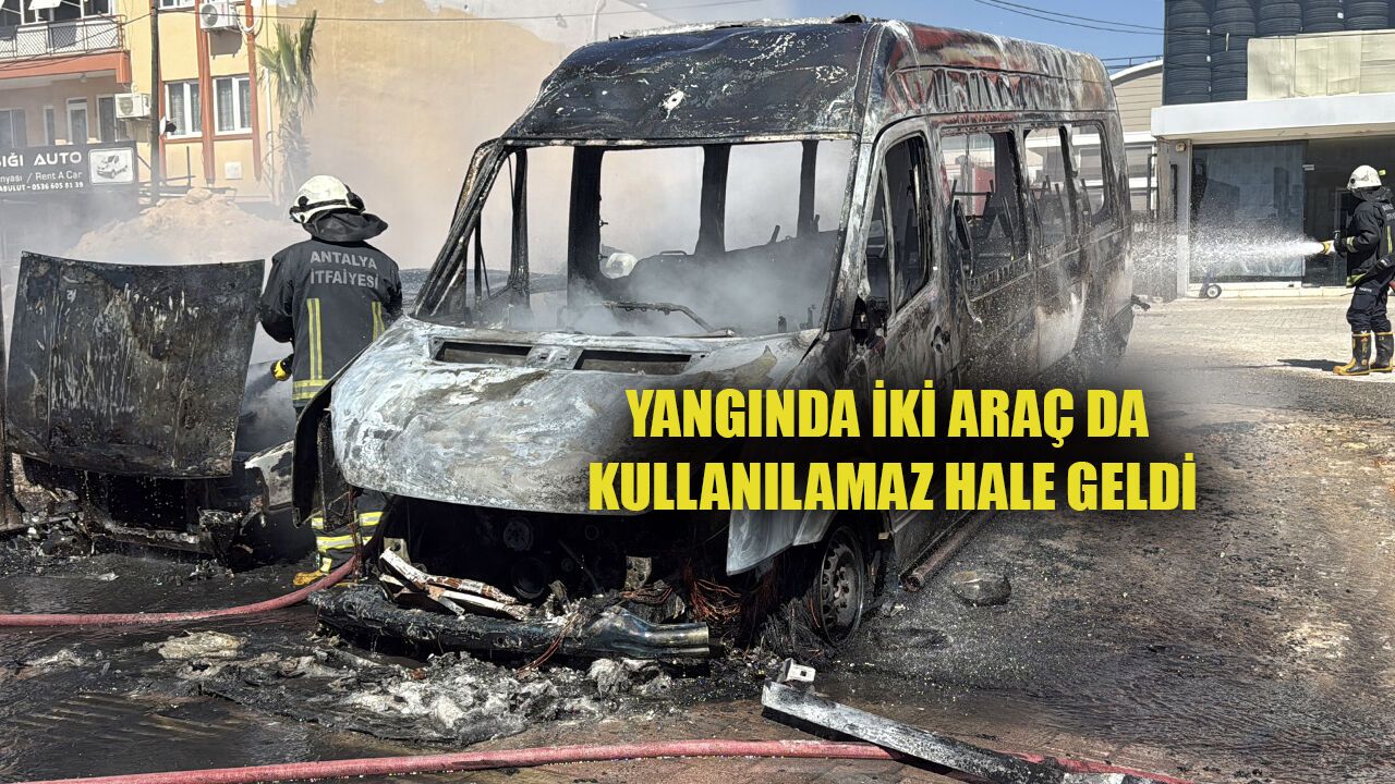 Antalya'da yangın, saat 12.30 sıralarında Kepez ilçesi Kanal Mahallesi Sakarya Bulvarı üzerinde meydana geldi. Yol kenarında park halinde bulunan servis midibüsü ile otomobil, bilinmeyen nedenle bir anda yanmaya başladı. Araçlardan yükselen dumanı fark eden çevredekiler, yangın tüpleri ve suyla alevlere müdahale etti. Alevlerin kısa sürede büyümesi üzerine durum 112 Acil Çağrı Merkezi'ne bildirildi. İhbarla adrese ekipler sevk edildi. Kısa sürede bölgeye ulaşan itfaiye ekibi, alev alev yanan iki araca müdahale ederek yangını kontrol altına aldı ve soğutma çalışması yaptı. Polis ekipleri, yangın nedeniyle Sakarya Bulvarı'nda güvenlik önlemi alarak trafiği kontrollü sağladı. Olayda yaralanan olmazken, otomobil ile servis midibüsü kullanılamaz hale geldi. Yangının çıkış nedeninin belirlenmesi için ekipler inceleme başlattı.