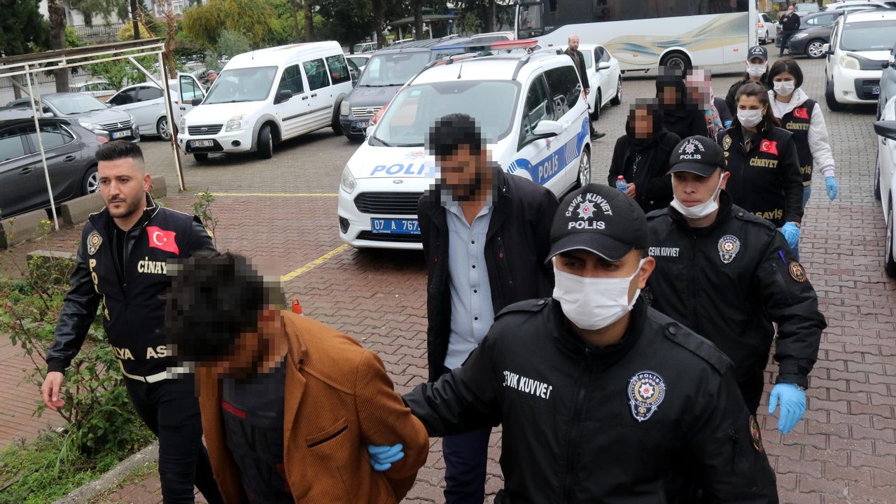 Polis merkezinde işlemleri tamamlanan şüpheliler Halil E., D.K., İ.E., M.A., A.B., D.A.A., F.E., H.E., A.A. ve H.E. bugün sabah saatlerinde sağlık kontrolüne getirildi. Şüphelilerden 2'si yaşlılık nedeniyle yürüyemedikleri için otobüsün içinde sağlık kontrolünden geçirildi. 10 şüpheli işlemleri sonrası adliyeye sevk edildi. (DHA)
