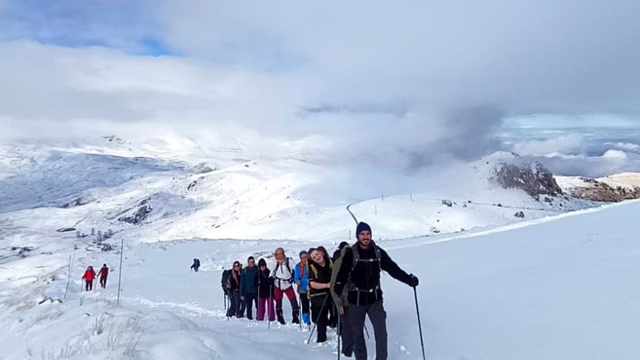 Antalya'nın beyaza bürünen zirvelere kar yürüyüşü