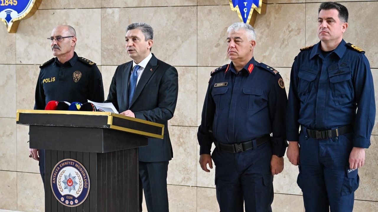 Antalya İl Emniyet Müdürlüğü’nde gerçekleştirilen Basın Bilgilendirme Toplantısı’nda, Antalya Valisi Hulusi Şahin’e, İl Emniyet Müdürü Dr. Sabit Akın Zaimoğlu, İl Jandarma Komutanı Tümgeneral Ahmet Kavukcu ve Sahil Güvenlik Grup Komutanı Yarbay Tolga Coşkun eşlik etti.