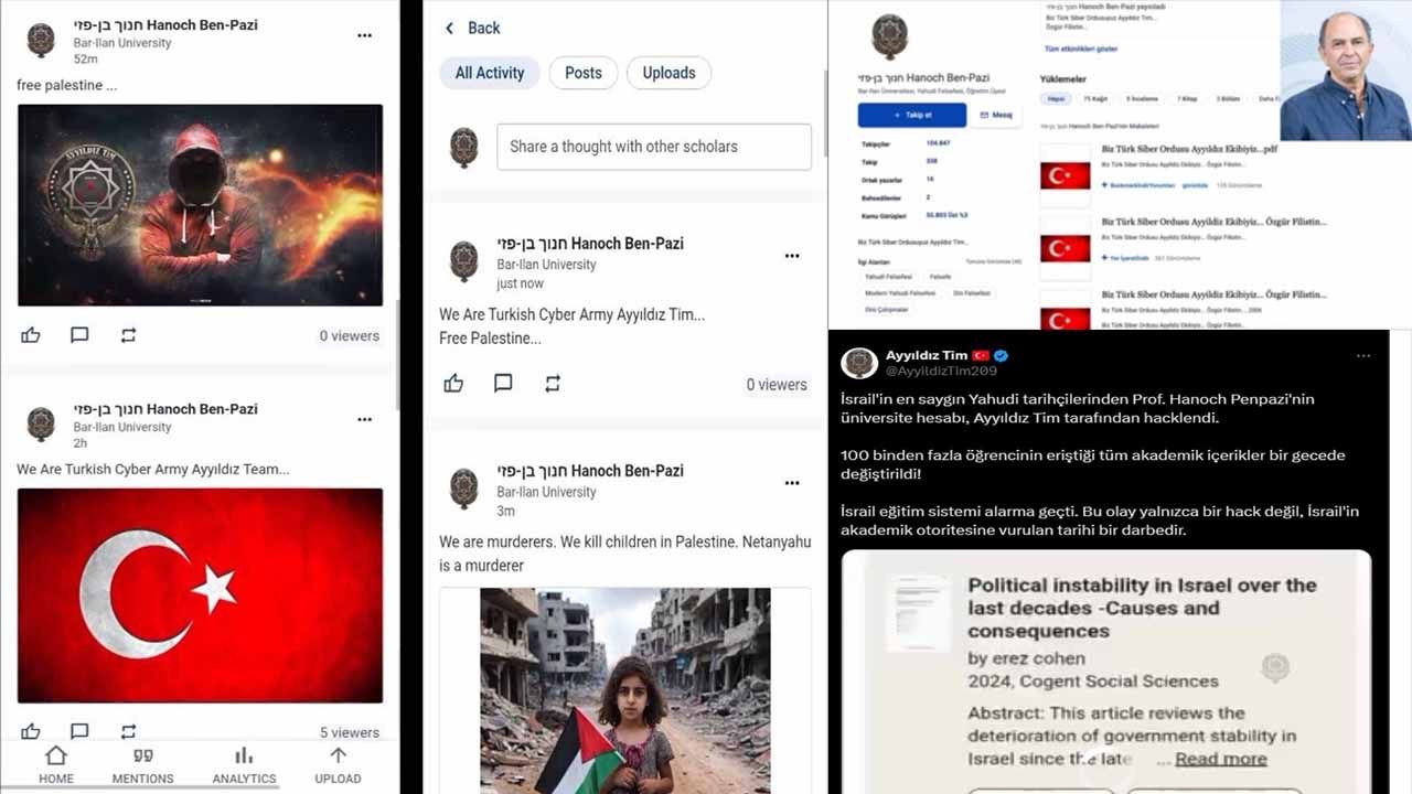 İsrail'de faaliyet gösteren bir üniversitede ders veren Prof. Hanoch Penpazi'nin dijital platformuna erişim sağlayan hesabı, Ayyıldız Tim'in hedefi oldu. 100 binden fazla öğrencinin eriştiği Penpazi'nin üniversite hesabı, Türk hacker grubu Ayyıldız Tim tarafından hacklendi. Olayın ardından profesörün sayfasında yer alan makaleler, ders notları ve sunumlar tamamen kaldırılarak yerine uyarı mesajları yüklendi.