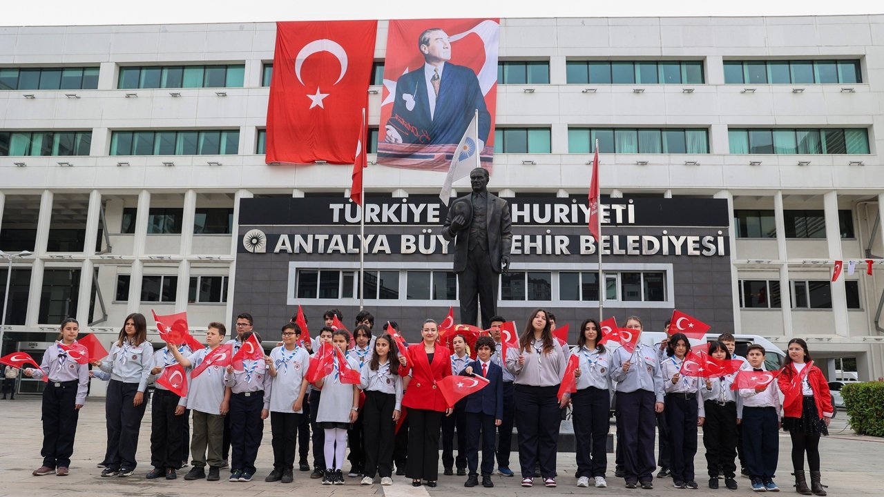 Türkiye Büyük Millet Meclisi'nin (TBMM) açılışının 106. yıl dönümü ve 23 Nisan Ulusal Egemenlik ve Çocuk Bayramı etkinlikleri kapsamında Antalya Büyükşehir Belediye Başkanlığı Hizmet Binası önünde bulunan Atatürk Anıtı'nda çelenk sunma töreni düzenlendi. Antalya Büyükşehir Belediye Başkan Vekili Büşra Özdemir, makamını devrettiği çocuk başkan Can Toprak Güven ile birlikte Atatürk Anıtı'na çelenk sundu. Çelenk sunma töreninin ardından Büyükşehir Belediye Başkanlığı makamında devir teslim töreni yapıldı. Büyükşehir Belediye Başkan Vekili Özdemir, koltuğunu Cengiz Topel İlkokulu 4'üncü sınıf öğrencisi Can Toprak Güven'e devretti.