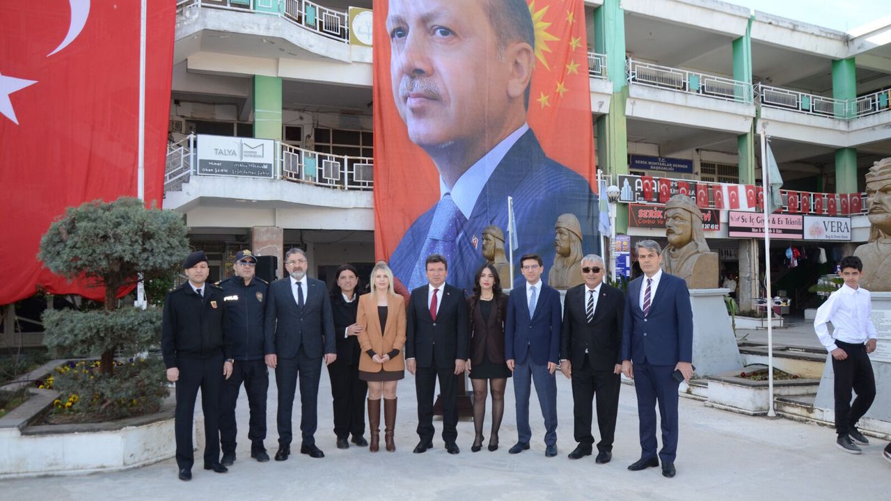 Gazi Mustafa Kemal Atatürk'ün Serik'e gelişinin 96'ncı yıl dönümü dolayısıyla dün ilçede resmi tören düzenlendi. Kent protokolünün katılımıyla Cumhuriyet Meydanı'ndaki Atatürk büstüne çelenk bırakıldı. Etkinlikler daha sonra Tarihi Antik Aspendos Tiyatrosu'nda devam etti. CHP İlçe Başkanı İbrahim Turhat ve beraberindekiler ise resmi törenin ardından alternatif çelenk töreni yaptı. İlçe Başkanı Turhat, bu anlara ilişkin fotoğrafları dün sanal medyadaki hesabından paylaştı. Turhat'ın paylaştığı fotoğraflardan birinde Cumhurbaşkanı Recep Tayyip Erdoğan ve Cumhurbaşkanlığı forsunun bulunduğu posterin üzerinde oynama yapılarak kapatıldığı iddia edildi.