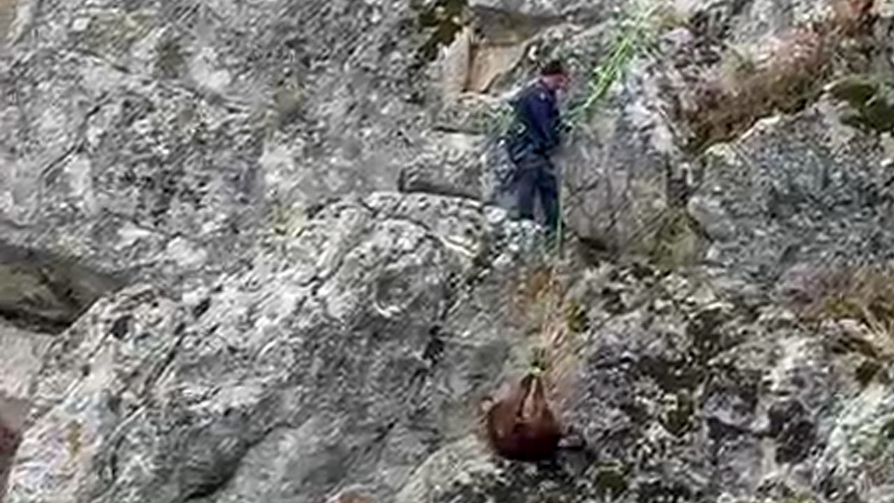 Kayalıklarda mahsur kalan 2 keçi itfaiye ekiplerinin çalışmasıyla kurtarıldı.