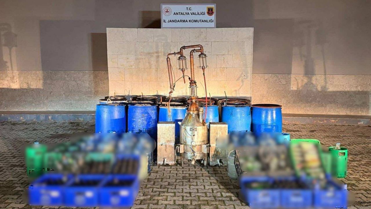 Antalya Elmalı ilçesinde jandarma ekiplerince düzenlenen operasyonda, binlerce litre kaçak alkol ile üretim malzemeleri ele geçirildi.