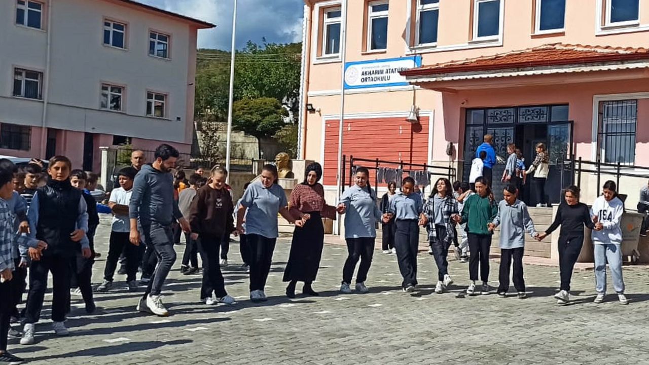 Akharım Beldesi Atatürk Ortaokulu yönetici ve öğrencileri, Cumhurbaşkanlığı tarafından 2025 yılının 'Aile Yılı' ilan edilmesi ve Milli Eğitim Bakanlığı'nın Maarif Modeli doğrultusunda okullarda değer temelli eğitim anlayışını güçlendirmeye yönelik çalışma kapsamında etkinlik düzenledi. Okul idarecileri ve öğrenciler evlenen müzik öğretmeni Emre Tenger için okul bahçesinde eğlence düzenledi. Okul müdürü Süleyman Sarışık davetiyle öğretmen ve öğrencilerin yer aldığı etkinlikte Tenger ve öğrenciler, eğlenceli vakit geçirdi. Sarışık, Tenger'e düğün hediyesi altın taktı. Sarışık, "Öğrencilerimize yönelik değerler eğitimi amacıyla düzenlediğimiz etkinlikte buluştuk. Güzel bir etkinlik yaptığımızı düşünüyoruz" dedi.