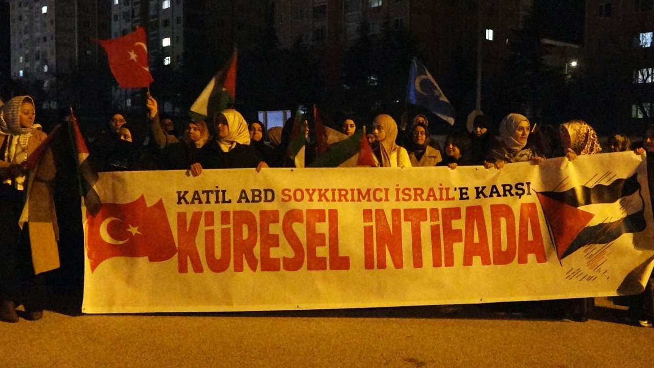 İsrail'in Filistinlilere karşı idamı yasallaştırmasının tam bir vahşet, açık bir hukuk ihlali olduğunu vurgulayan Büyükkeleş, 'İşgal ettikleri toprakların gerçek sahiplerini ipe götürmeye cüret etmek demek, kendi ipini çekmekten, terör devletinin kaçınılmaz sonunu hazırlamaktan başka bir şey değildir. Bu adımın Nazi zulmünden hiçbir farkı yoktur. Bu zulme imza atanlar ve her şey olurken sessiz kalanlar muhakkak ki Hitler ile aynı akıbeti yaşayacaktır. Bizler Filistin'e Destek Platformu olarak meşrep, mezhep, siyasi görüş, din ve dil ayrımı yapmaksızın küresel bir direniş hareketi başlatmakta her yönden ve her hususta zalim Siyonist rejimiyle mücadele etmekte kararlıyız. Bu bağlamda ikinci kez yola 200'ü aşkın gemiyle çıkacak Sumud Filo'suna tam desteğimizi ilan etmek istiyoruz' dedi. Katılanlar, çeşitli sloganlar attıktan sonra dağıldı.