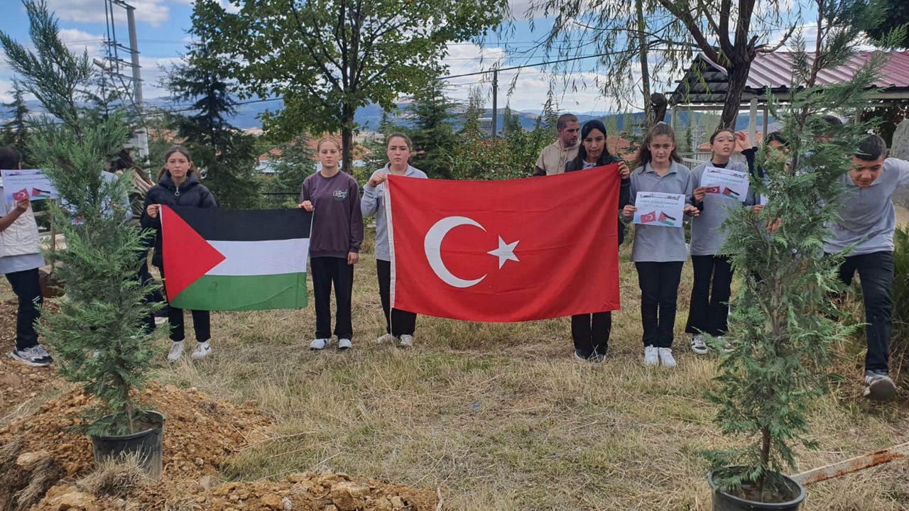 Okul Müdürü Süleyman Sarıışık, "Filistinli kardeşlerimize destek olmak amacıyla bir hatıra ormanı oluşturduk. Bugün belki bir ağaç dikiyoruz ama içine kattığımız sevgiyle ileride orman olacak" dedi.