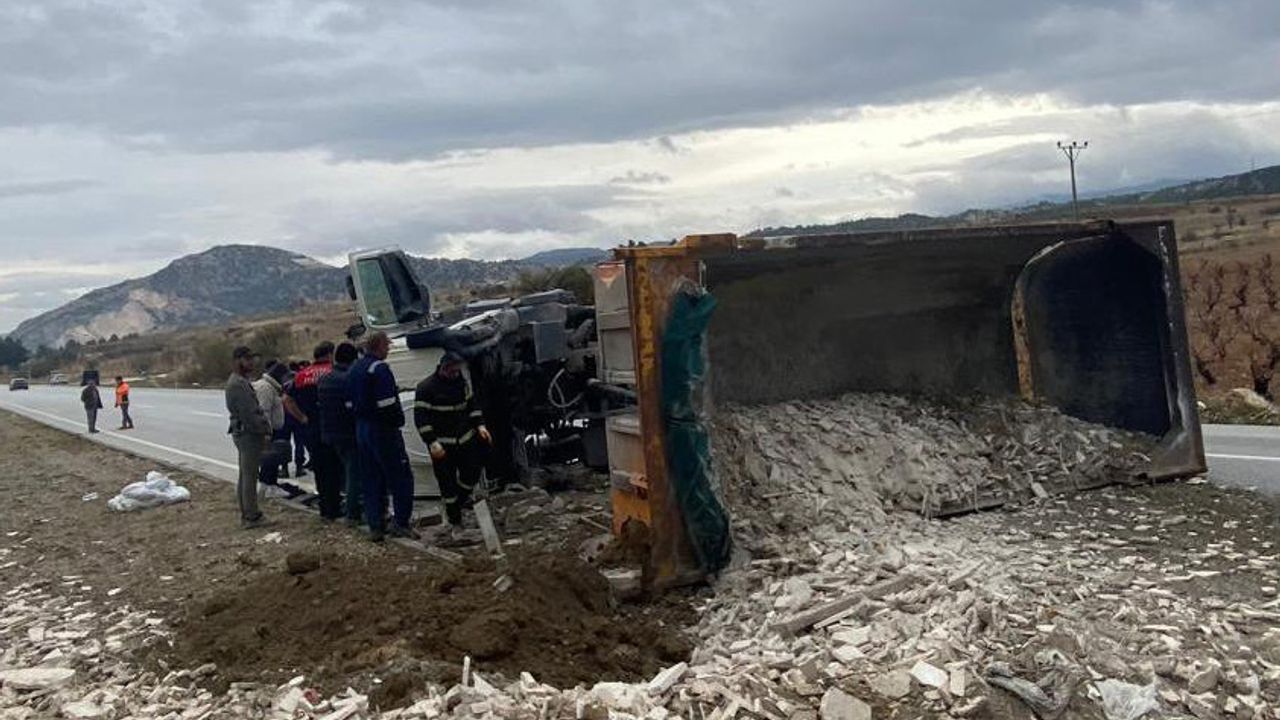 Burdur'da Mustafa Uz, kullandığı kamyonun hakimiyetini kaybederek devrilmesi sonucu yaralandı.