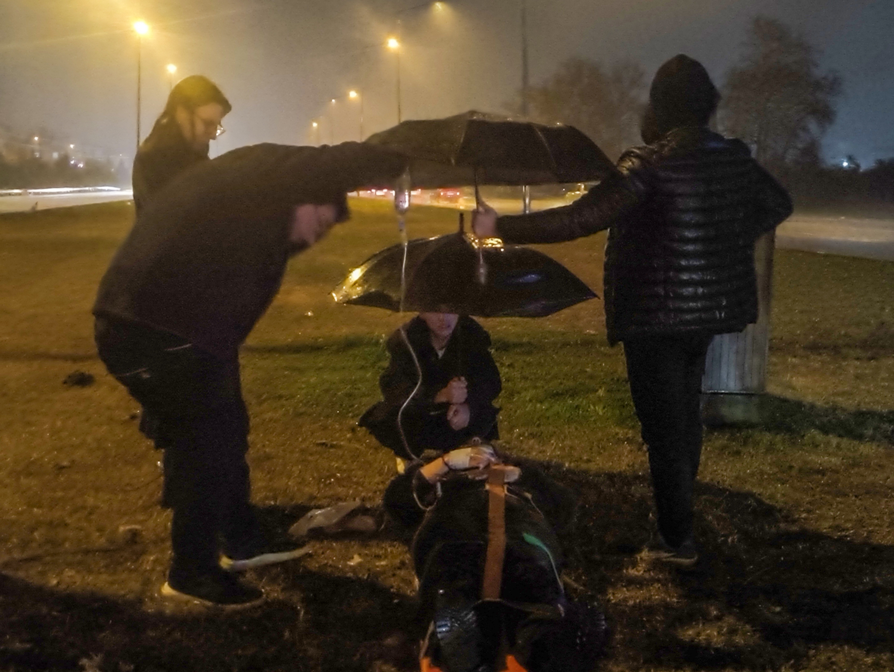 İhbarla olay yerine ekipler sevk edildi. Kaza yapan aracın sürücüsü Baran E. vatandaşlar tarafından, araçta sıkışan 2 kadın yolcu ise itfaiye ekiplerinin müdahalesi ile sıkıştıkları yerden çıkarıldı. Yaralılardan ikisi ambulanslar ile yakındaki hastanelere gönderilirken, diğer bir yaralı için ambulans çağırıldı. Refüj üzerindeki çimlere yatırılan yaralı kadının ambulans gelene kadar yağmurdan ıslanmaması için vatandaşlar başında şemsiye açarak bekledi. Yaralı kadının başından ayrılmayan vatandaşlar, ambulansın kadını alıp hastaneye götürmesiyle olay yerinden ayrıldı.
