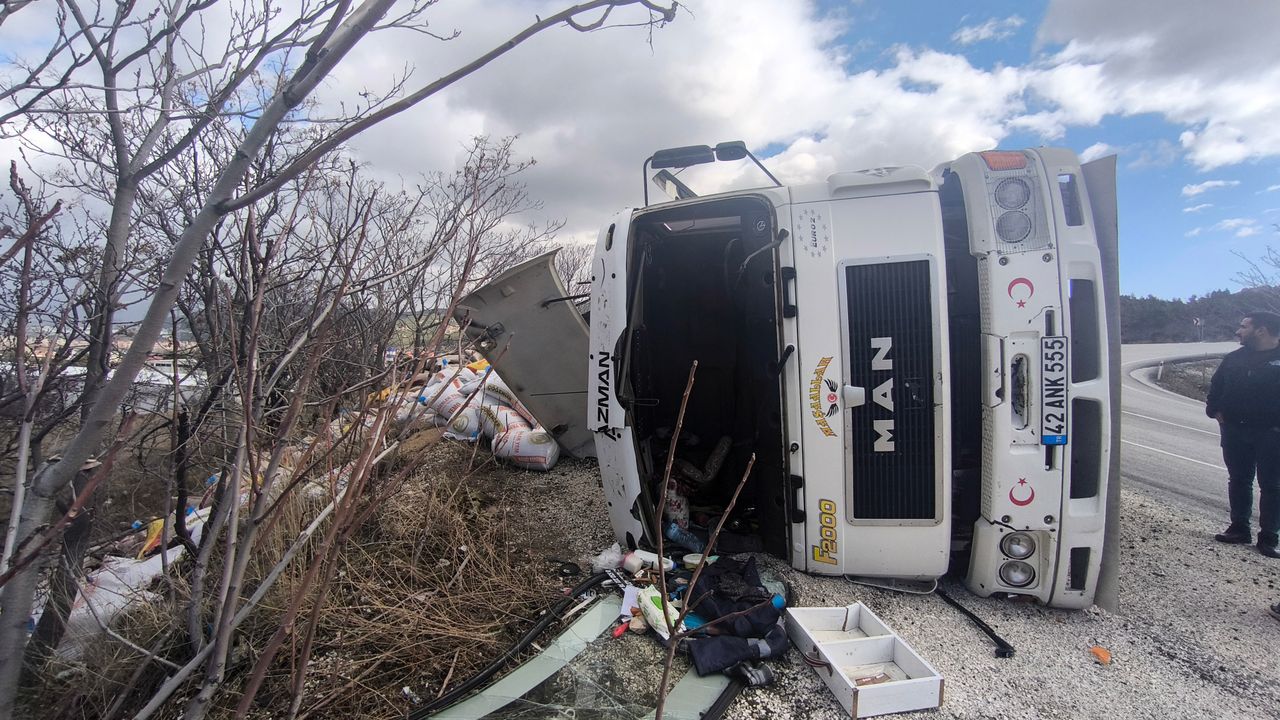 Burdur-Isparta Dağ Yolunda Tır devrildi, sürücü yara almadan kurtuldu.