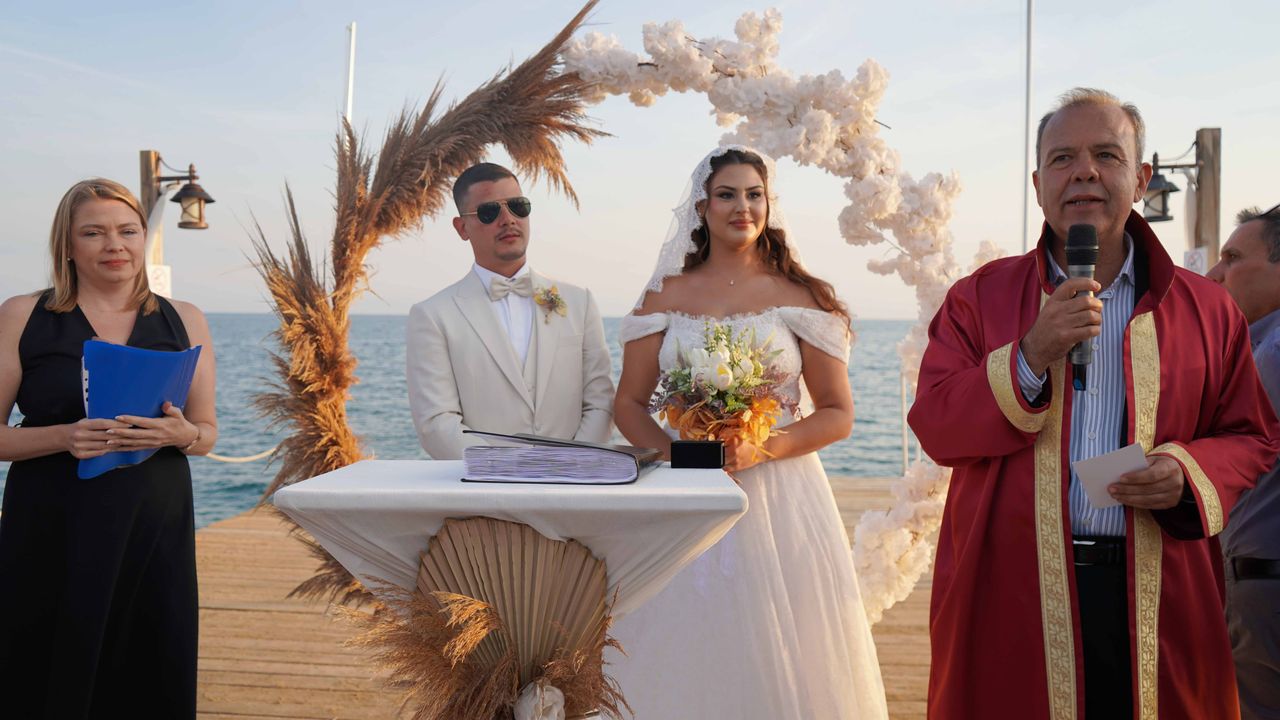Altıntaş ve Jimenez, dün akşam Antalya'da Lara Sahili’nde düzenlenen törenle dünyaevine girdi. Çiftin nikahını Döşemealtı Belediye Başkanı Menderes Dal kıydı. Deniz kenarındaki iskelede düzenlenen törene çiftin aileleri ve yakın arkadaşları katıldı. Nikahın ardından eğlenceye geçen çift, ilk danslarını gerçekleştirdikten sonra Türk düğünlerinin vazgeçilmezi 'Erik Dalı' eşliğinde sahneye çıktı. Davulla oynanan Erik Dalı, farklı ülkelerden gelen konukların da katılımıyla renkli görüntüler oluşturdu. Kosta Rikalı damat Ramses Alexander Quiros Jimenez, Erik Dalı ritmine ayak uydurarak eşi ve konuklarla birlikte oynadı.