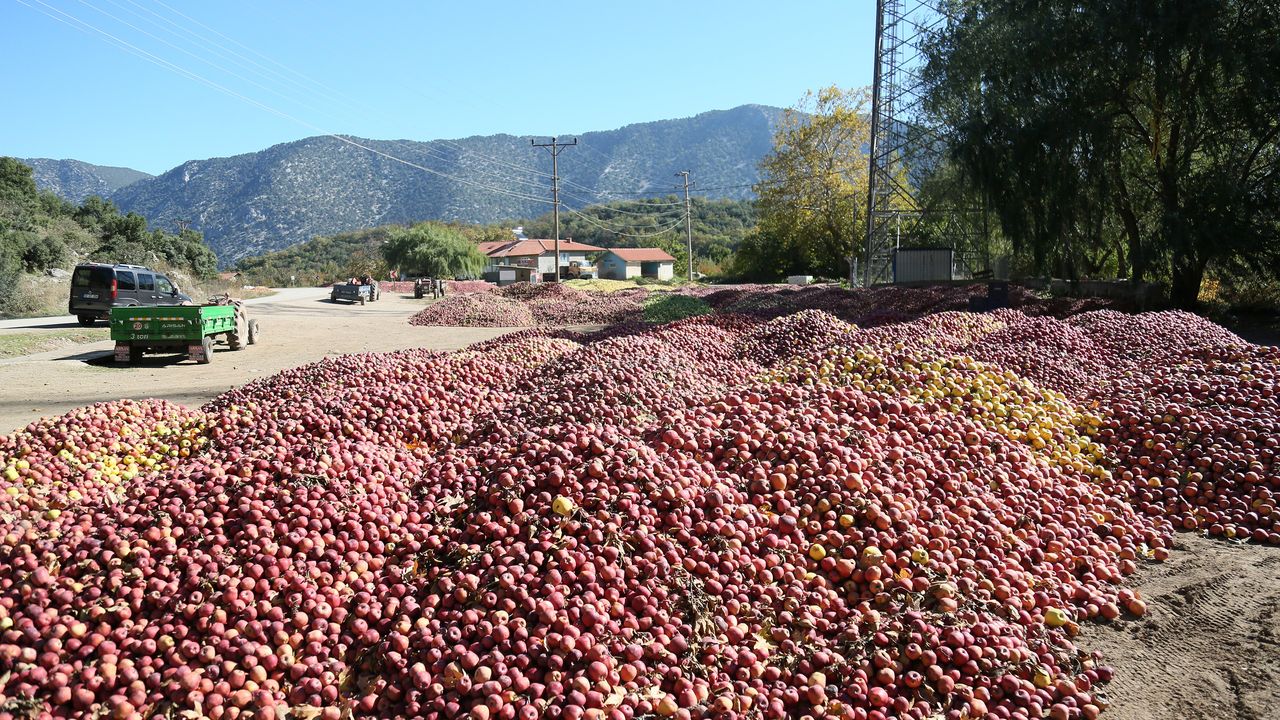 Elma üreticisi Bülent Çankaya, köylerde her yerde görülen elma yığınlarının halk tabiriyle 'dökük elma' olduğunu belirterek, "Konsantre olarak işleniyor. Bu yıl kuraklıktan dolayı elma rekoltesinde düşüş var. Elma boyut yapmadı sudan dolayı, Eğirdir Gölü'nde malum çekilmeden dolayı. Köyler, bu konuda ızdırap içinde. Ama belli bir rekolte her zaman oluyor. Biz bunları direkt bölgemizdeki ve çevre illerdeki fabrikalara gönderiyoruz. 4-5 firmamız var alıcı boyutunda. Sofralarımıza gelen elma suyunun ilk başlangıç noktası burası. Bu şekilde alım yapılır, dökme olarak. Sonra 25-30 tonluk kamyonlara yüklenir, fabrikaya gider. Fabrikada konsantre olarak belli bir zaman bekletilir ve sofralarımıza geçer. Bu yıl başlangıç fiyatı 10 liradan açıldı, sonra 8,5'a kadar düşüş yaşandı. Şu anda kilosu 10- 10,5 arası" dedi.