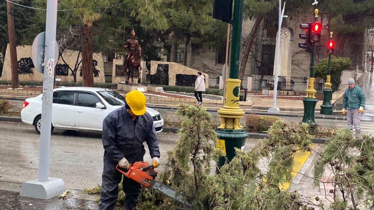 Etkili olan kuvvetli rüzgar nedeniyle kırılan çam ağacı binanın üzerinde devrildi. Ekiplerin çalışmasının ardından ağaç kaldırıldı.