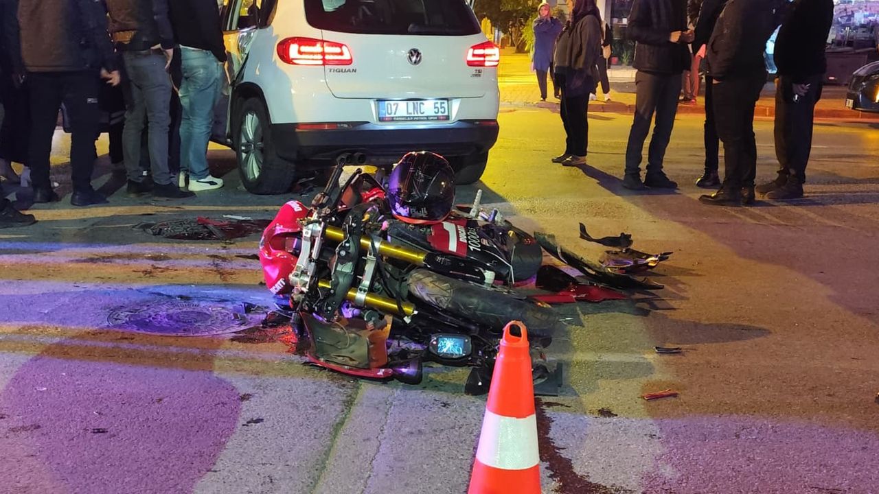 Kaza, dün saat 23.30 sıralarında, Manavgat Demokrasi Bulvarı'nda meydana geldi. İddiaya göre; Kadir Akbulut'un 07 CEF 424 plakalı motosikleti, ara sokaktan yola çıkan Mehmet Tayyar Işık'ın kullandığı 07 LNC 55 plakalı otomobille çarpıştı. Motosikletin sürücüsü Kadir Akbulut ile beraberindeki Melike Deniz, otomobil sürücüsü Mehmet Tayyar Işık ve otomobildeki İsmehan Işık yaralandı.