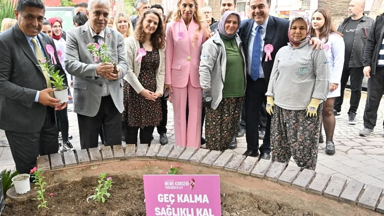 'MEME KANSERİ SEMBOLÜ PEMBE ÇİÇEKLER EKİLDİ'