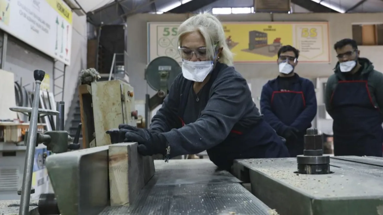 'Mobilya İmalat ve Montaj' kursunun sunduğu ücretsiz eğitimlerle kursiyerler, ahşap işçiliğinin temel tekniklerini öğrenerek üretim yapıyor. Kursiyerler, uluslararası geçerliliğe sahip Mesleki Yeterlilik Belgesi (MYK) ile kendi iş yerlerini açabilme fırsatı bulurken, yurt dışında çalışma olanağına da sahip olabiliyor.