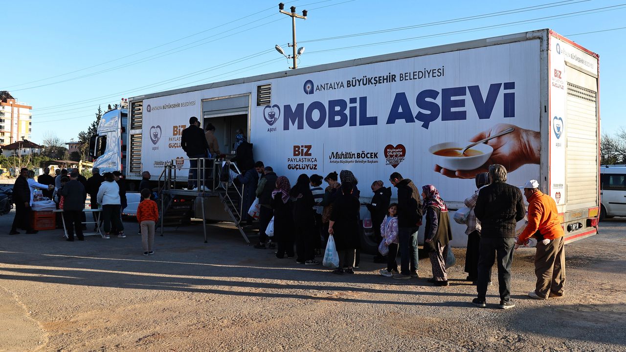 Antalya Büyükşehir Belediyesi, ramazan ayının manevi atmosferini ve paylaşma ruhunu mahalle mahalle yaşatmaya devam ediyor. Büyükşehir Belediyesi'nin geleneksel hale getirdiği sıcak yemek ikramları kapsamında Mobil Aşevi, bu kez Duraliler Semt Pazarı önünde kent sakinleriyle buluştu. İftar saatine kısa süre kala kurulan dağıtım alanında 1000 kişilik sıcak yemek ikramı gerçekleştirildi. Mobil Aşevi'nin Duraliler menüsünde tarhana çorbası, etli kuru fasulye, pilav ve helva yer aldı.