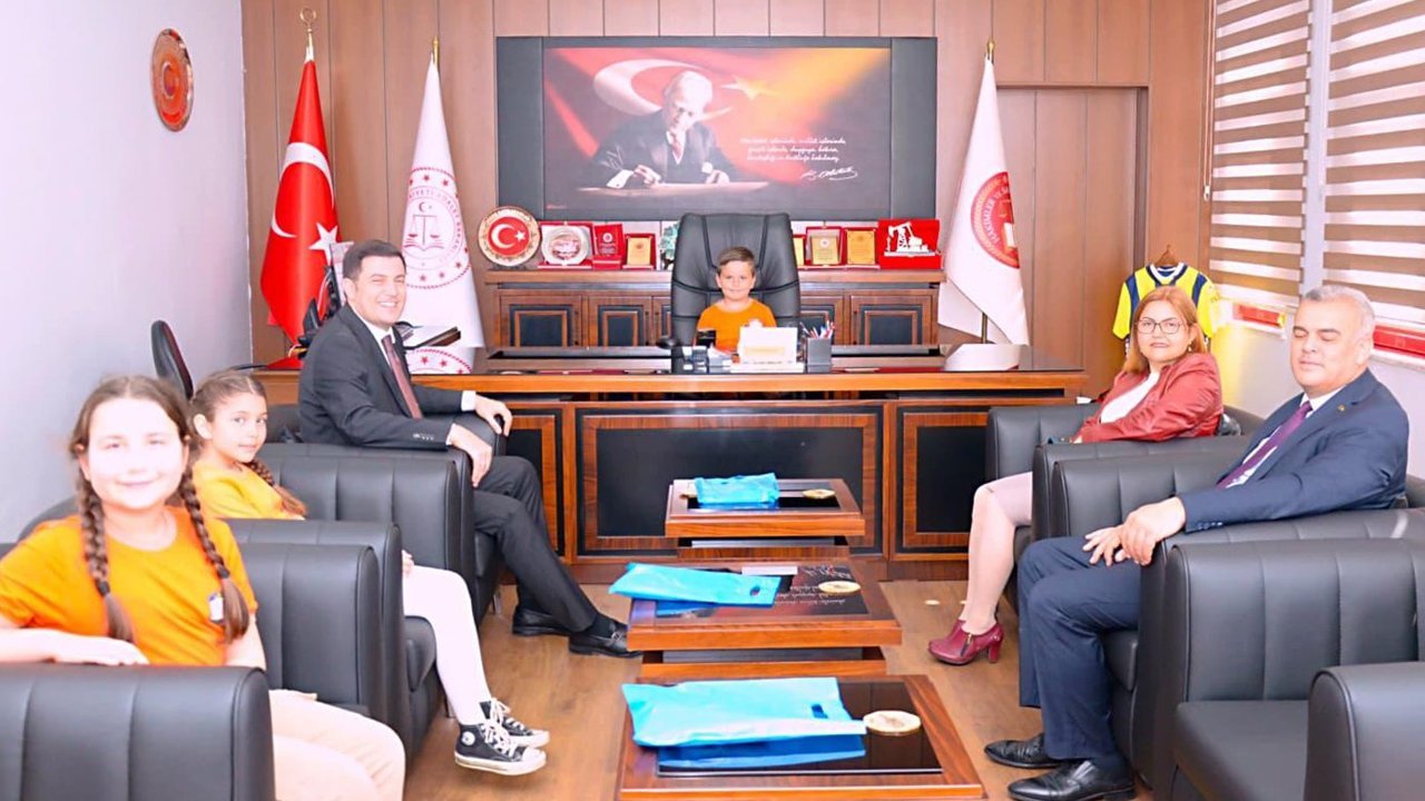 Okul müdürü ve sınıf öğretmenleri eşliğinde gerçekleştirilen ziyarette Başsavcı Ersin Selimefendigil, makamını temsili olarak öğrencilere bıraktı. Ziyarette öğrencilere adliyedeki işleyiş hakkında da bilgi verildi. Başsavcı Selimefendigil, 23 Nisan Ulusal Egemenlik ve Çocuk Bayramı kapsamında öğrencileri ağırlamaktan mutluluk duyduklarını belirterek, çocukların neşesi ve heyecanının anlamlı günü daha da güzelleştirdiğini ifade etti.