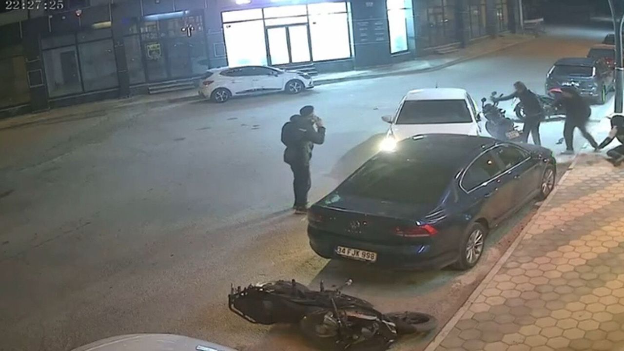 Seyir halindeki otomobil yol kenarında bekleyen motosikletli ve park halindeki otomobile çarptı. Motosikletlinin yaralandığı kaza anı kameraya yansıdı.
