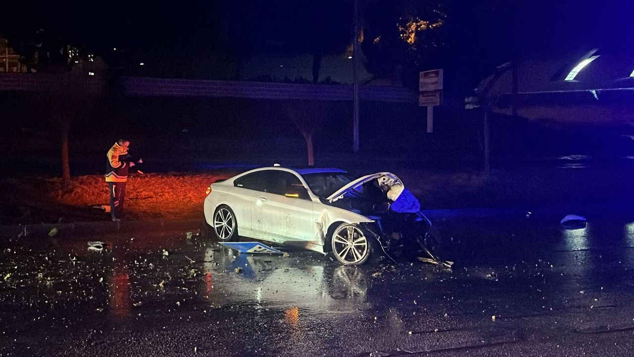 Kontrolünü kaybettiği otomobille refüjdeki aydınlatma direğini deviren sürücü yaralandı.