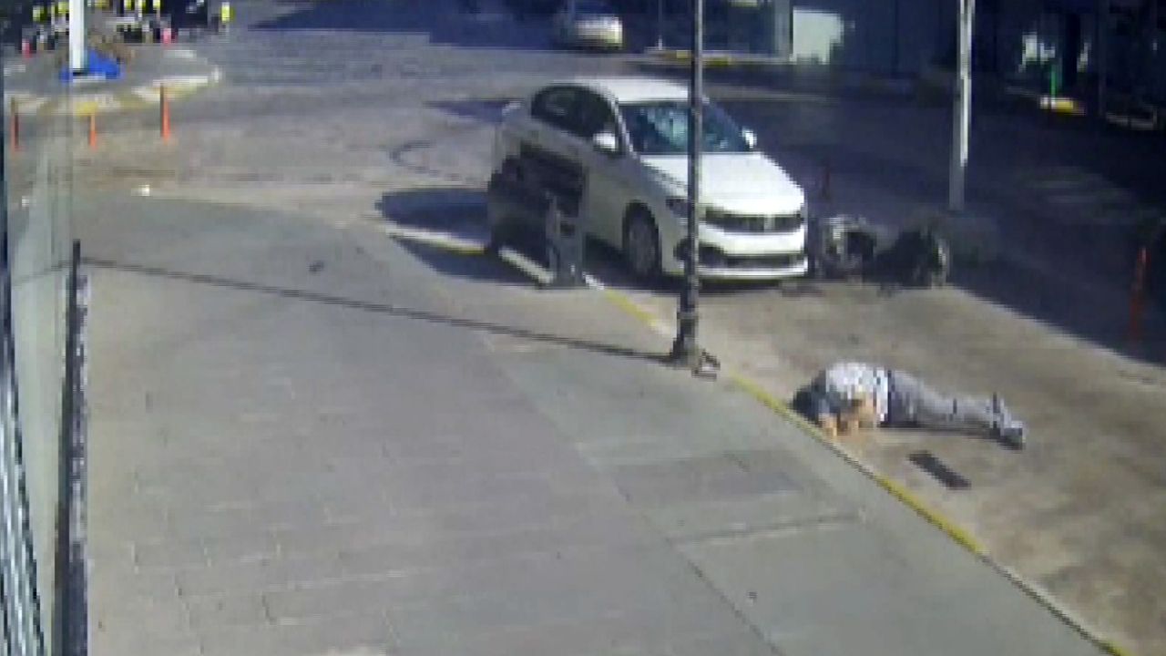 Antalya'da otomobille çarpışan motosikletlinin kaputun üzerinden yere savrulduğu kaza anı güvenlik kamerasına yansıdı.