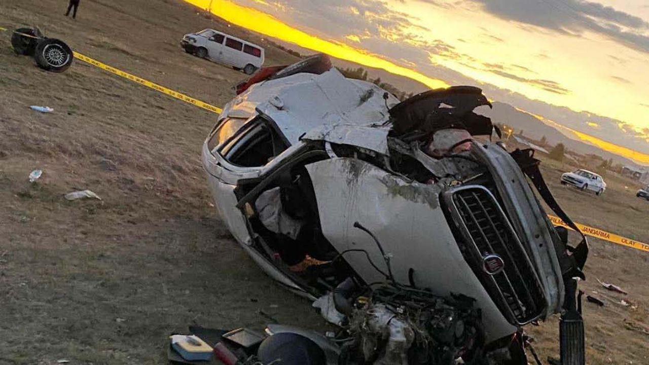 Kaza anı bir iş yerinin güvenlik kamerası tarafından kaydedildi. Otomobillerin kafa kafaya çarpışması, beyaz olanın taklalar atarak savrulduğu, diğerinin ise şarampole girdiği görüntülere yansıdı.