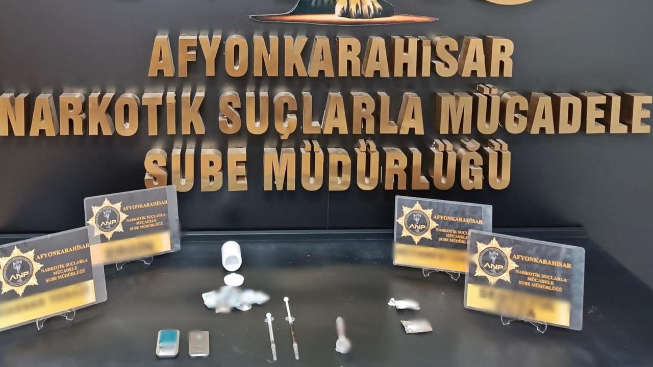 Afyonkarahisar Emniyet Müdürlüğü ekipleri 'Uyuşturucu madde ticareti yapma' suçundan 5'er yıl kesinleşmiş hapis cezası bulunan Ö.C. ile G.A.'yı yakaladı. 2 hükümlü işlemlerinin ardından cezaevine teslim edildi. Bolvadin'de uygulama noktasında durdurulan araç içerisinde yapılan aramada ise 238 gram uyuşturucu madde ele geçirildi. Olayla ilgili E.E.'ye 'Uyuşturucu madde kullanmak' suçu kapsamında adli işlem yapıldı. Öte yandan sokak satıcılarına yönelik yapılan çalışmalarda da 15 sentetik ecza maddesi, 7,85 gram uyuşturucu madde, hassas terazi ele geçirildi. Olayla ilgili M.D. ve E.U. hakkında 'Uyuşturucu kullanmak' suçundan adli işlem yapılırken, T.A. ise 'Uyuşturucu madde ticareti yapmak' suçundan çıkarıldığı mahkemece tutuklandı.