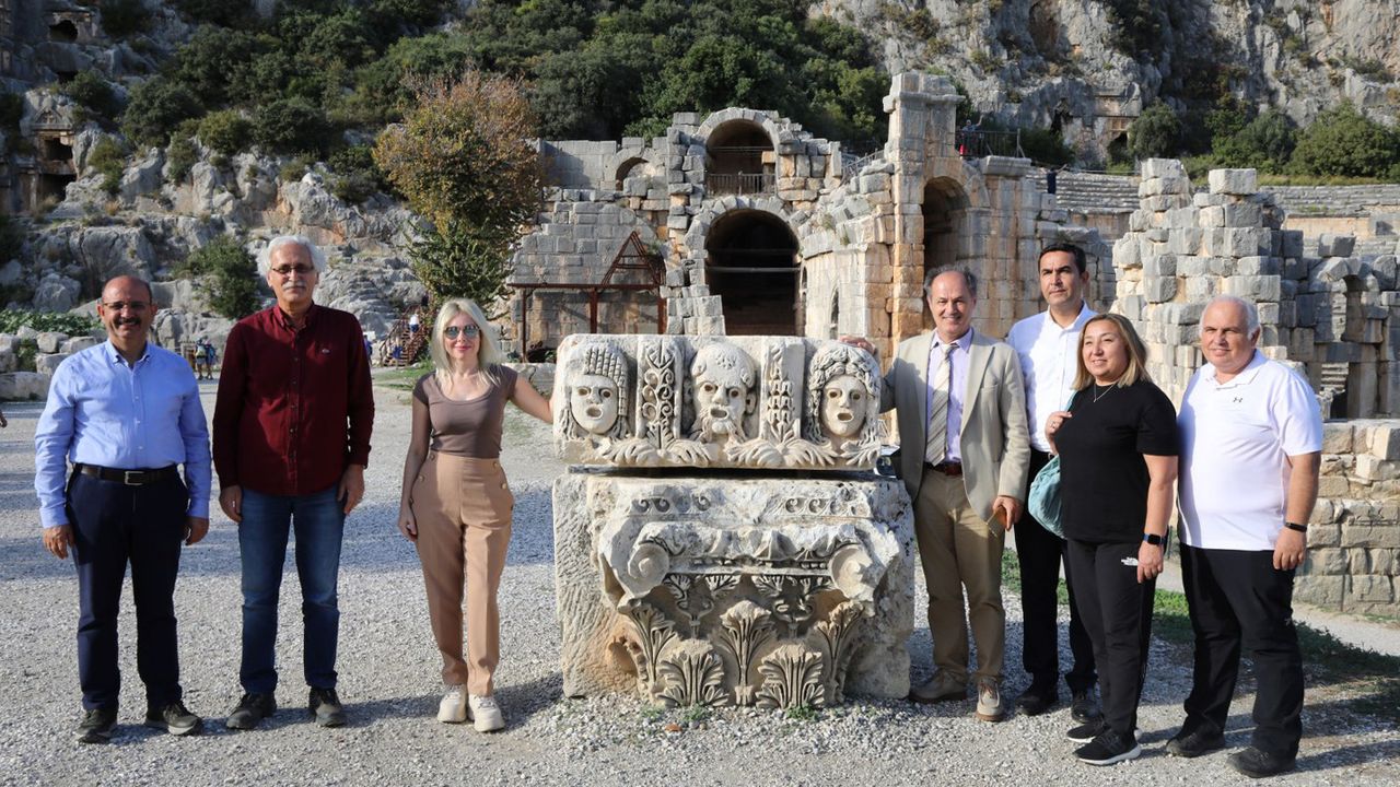 Akdeniz Üniversitesi Edebiyat Fakültesi Arkeoloji Bölümü öğretim üyesi Prof. Dr. Nevzat Çevik başkanlığında 2009’dan bugüne kazı çalışmalarına devam edilen Myra Antik Kenti’ni ziyaret eden Akdeniz Üniversitesi Rektörü Prof. Dr. Özlenen Özkan’ın beraberinde Rektör Yardımcıları Prof. Dr. Cengiz Toker, Prof. Dr. Şükrü Özen, Genel Sekreter Dr. Ali Evren İmre, Edebiyat Fakültesi Dekanı Prof. Dr. Nurşen Adak, Edebiyat Fakültesi Eski Çağ Dilleri ve Kültürleri Prof. Dr. Mustafa Adak da yer aldı.