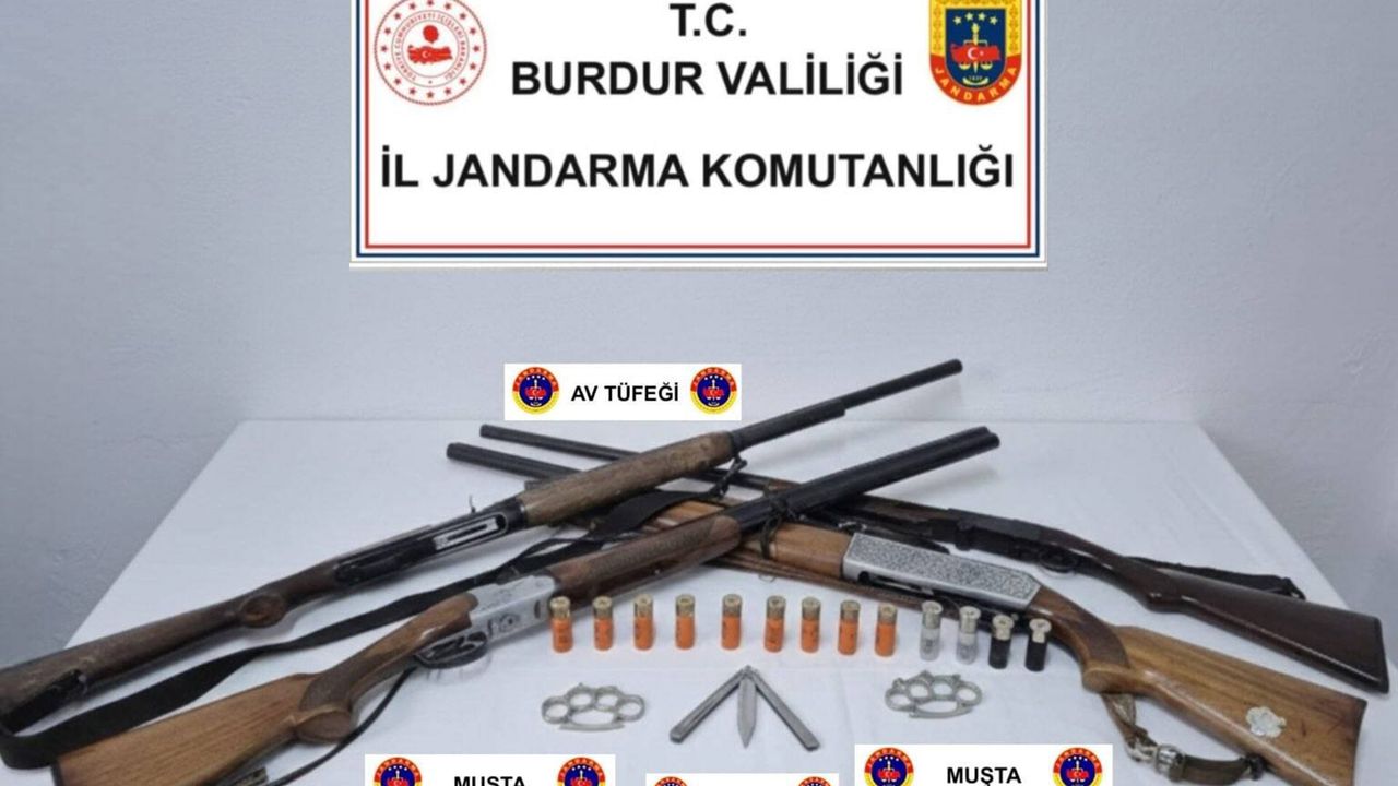 Burdur Cumhuriyet Başsavcılığı ve Yeşilova Cumhuriyet Savcılığı koordinesinde, İl Jandarma Komutanlığı ekiplerince kaçakçılık ve organize suçların önlenmesine yönelik yapılan planlı çalışmalar neticesinde, 5-9 Aralık tarihleri arasında icra edilen operasyonlarda M.A., İ.A. ve C.A. gözaltına alındı. Şüphelilerin ev ve iş yerlerinde yapılan aramalarda ruhsatsız 4 av tüfeği, 13 av tüfeği mühimmatı, ruhsatsız tabanca, 2 tabanca şarjörü, 220 tabanca mühimmatı ele geçirildi. Şüpheliler jandarmadaki işlemlerinin ardından çıkarıldıkları hakimlikçe serbest bırakıldı.